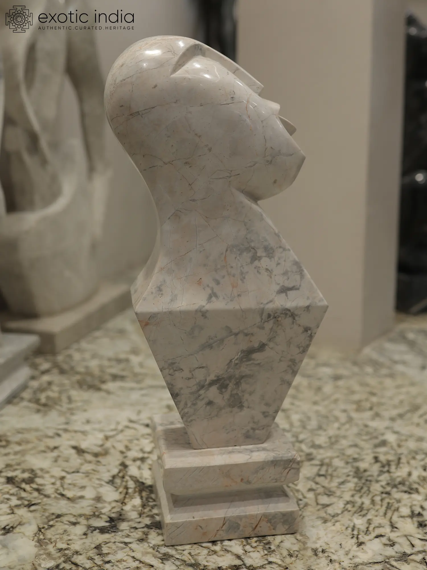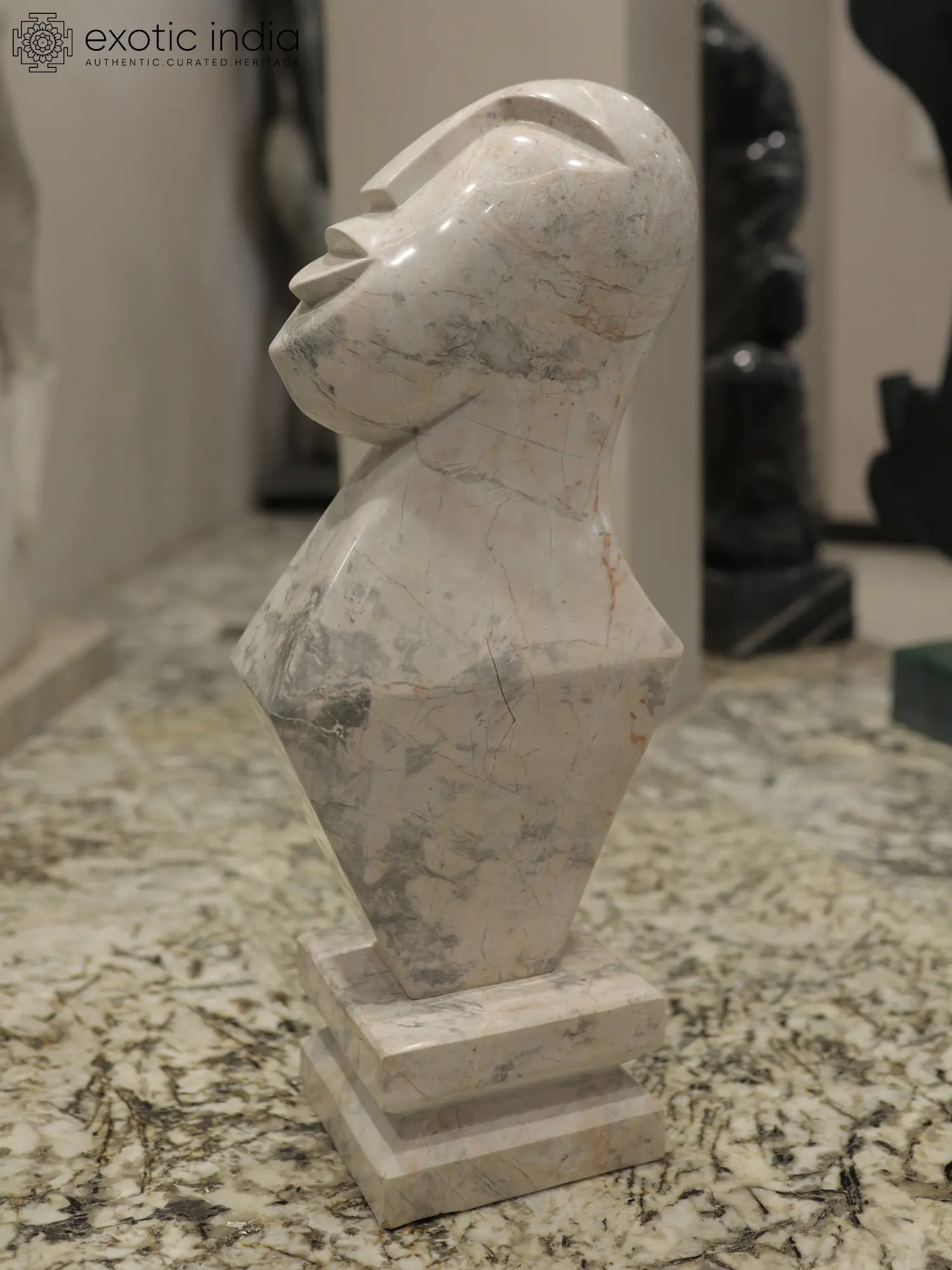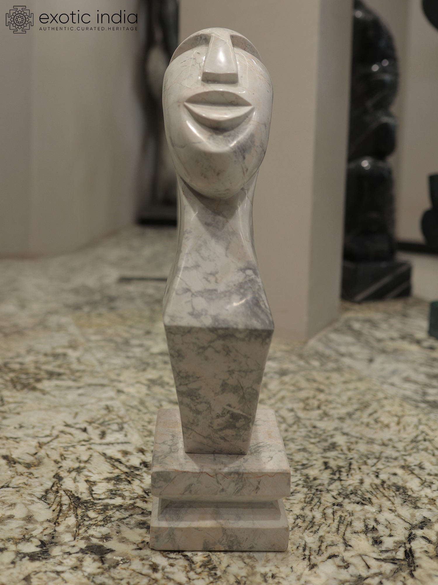 49" Timeless Embrace Sculpture | Modern Art Statue | White Marble | Exquisite Indian Art