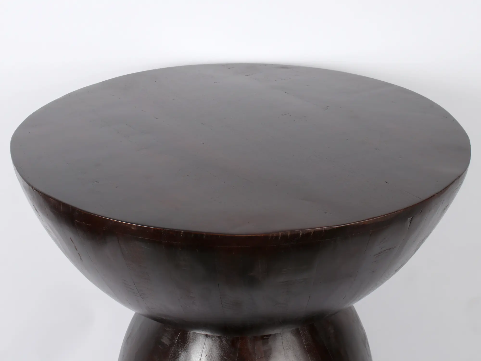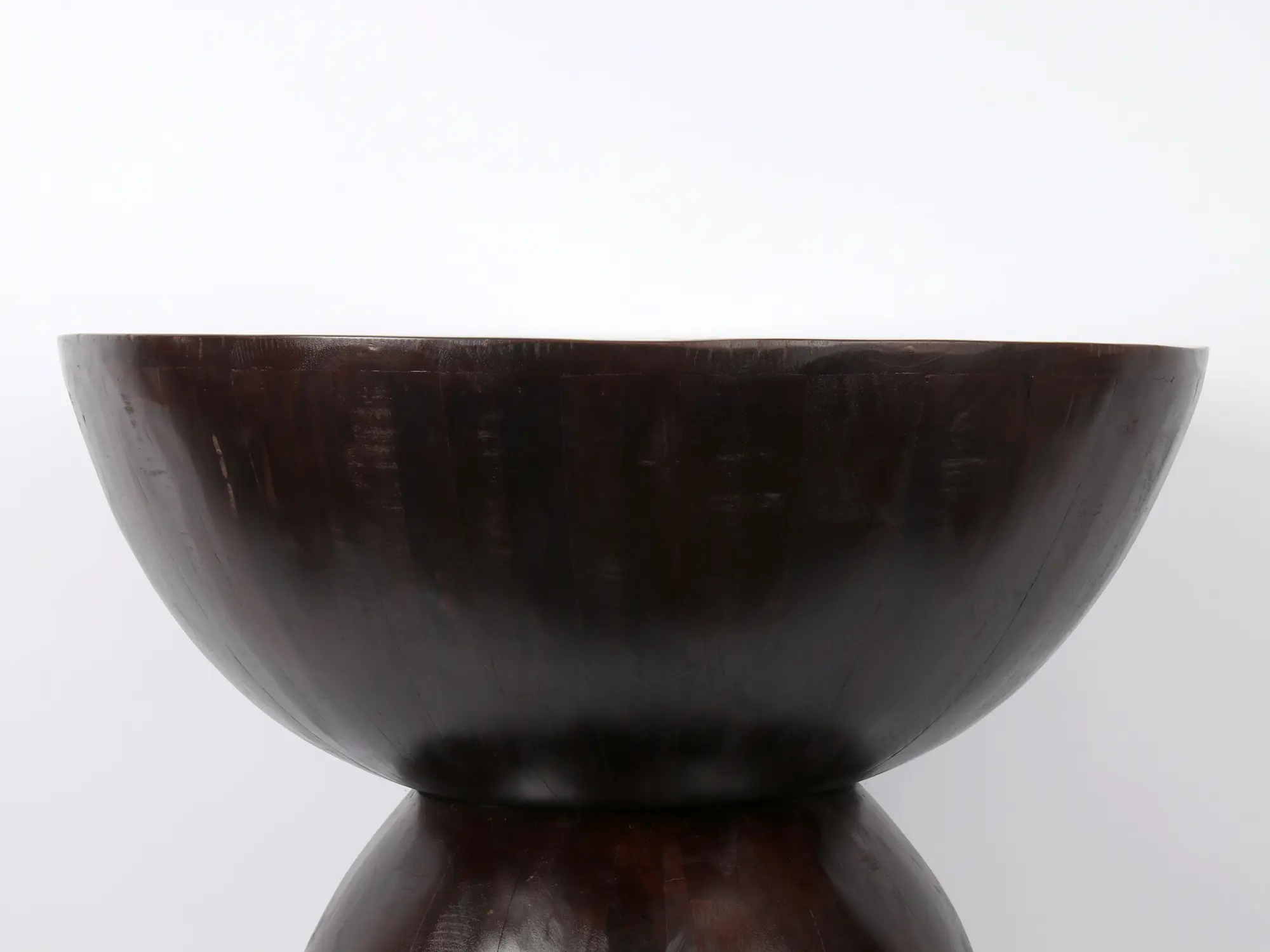 Elevate your living space with this stunning 29" large wooden pedestal. Crafted from rich, dark wood, this piece is more than just furniture; it's a work of art. Its unique, hourglass-shaped design commands attention, adding a touch of sophisticated rusticity to any room. The smooth, polished surface is inviting to the touch, while the deep, dark tone brings a sense of warmth and depth. Perfect as a display stand for plants, sculptures, or decorative bowls, this pedestal is as versatile as it is beautiful. Its substantial size makes it a focal point, ensuring it will be admired by all who enter your home.