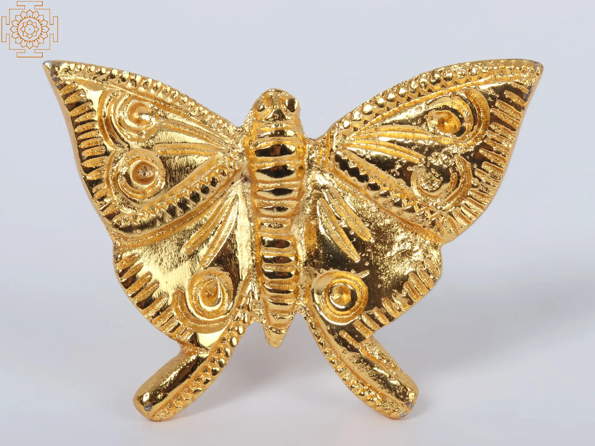 A compelling blend of elegance and nature-inspired charm for your living space is this gorgeous gold-plated butterfly wall hanging. This stunning creation, crafted in brass with perfection, turns your space into a sanctuary of beauty and grace. The gold-plated finish provides a touch of grandeur. The butterfly represents transformation, freedom, and the delicate balance of life.