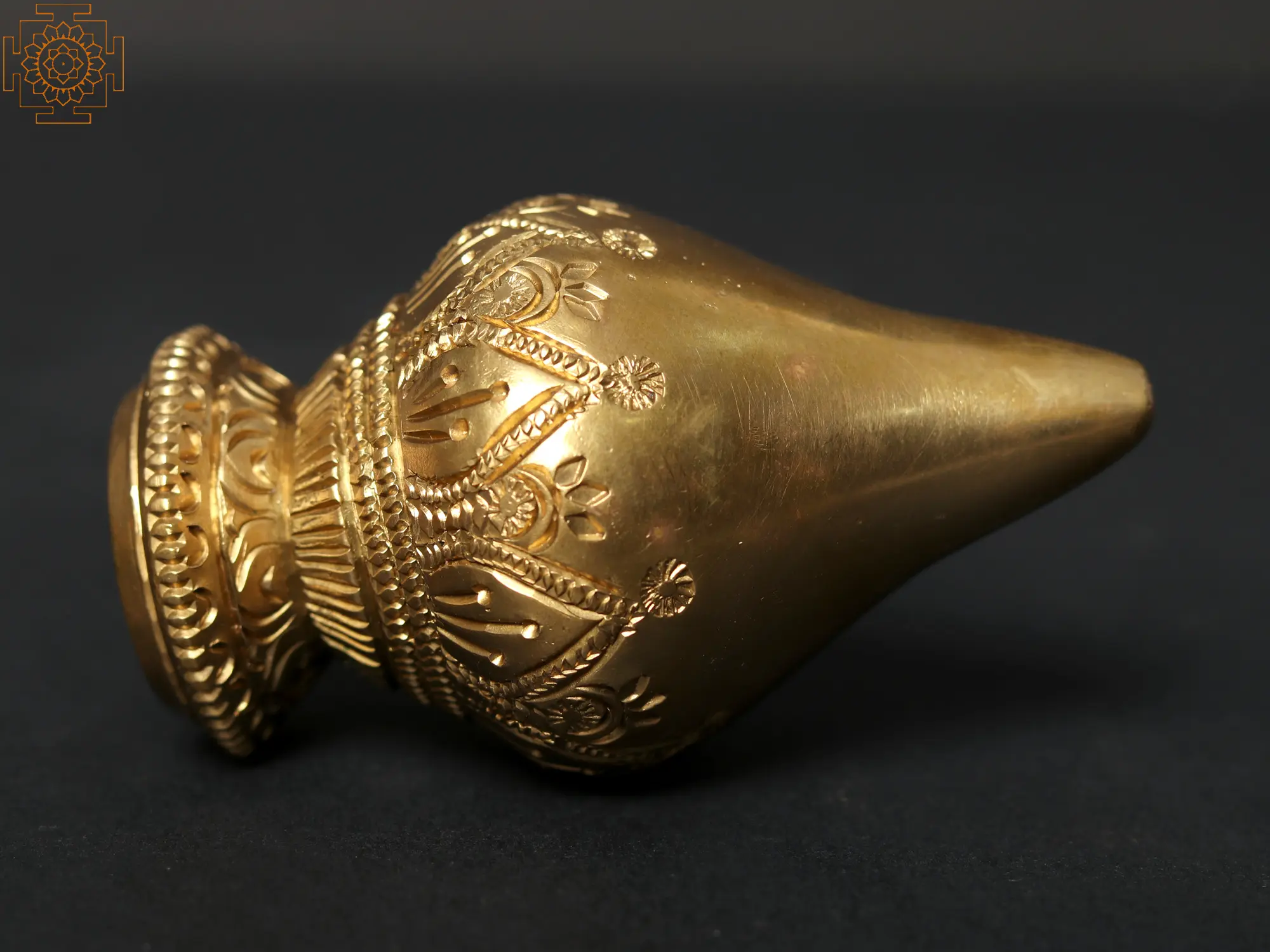 This Small Brass Decorative Coconut Kalash is a versatile home decor and ritual item. Made of brass, it exudes timeless elegance and sophistication. Traditionally used in Hindu rituals and ceremonies, it symbolizes purity, abundance, and auspiciousness.