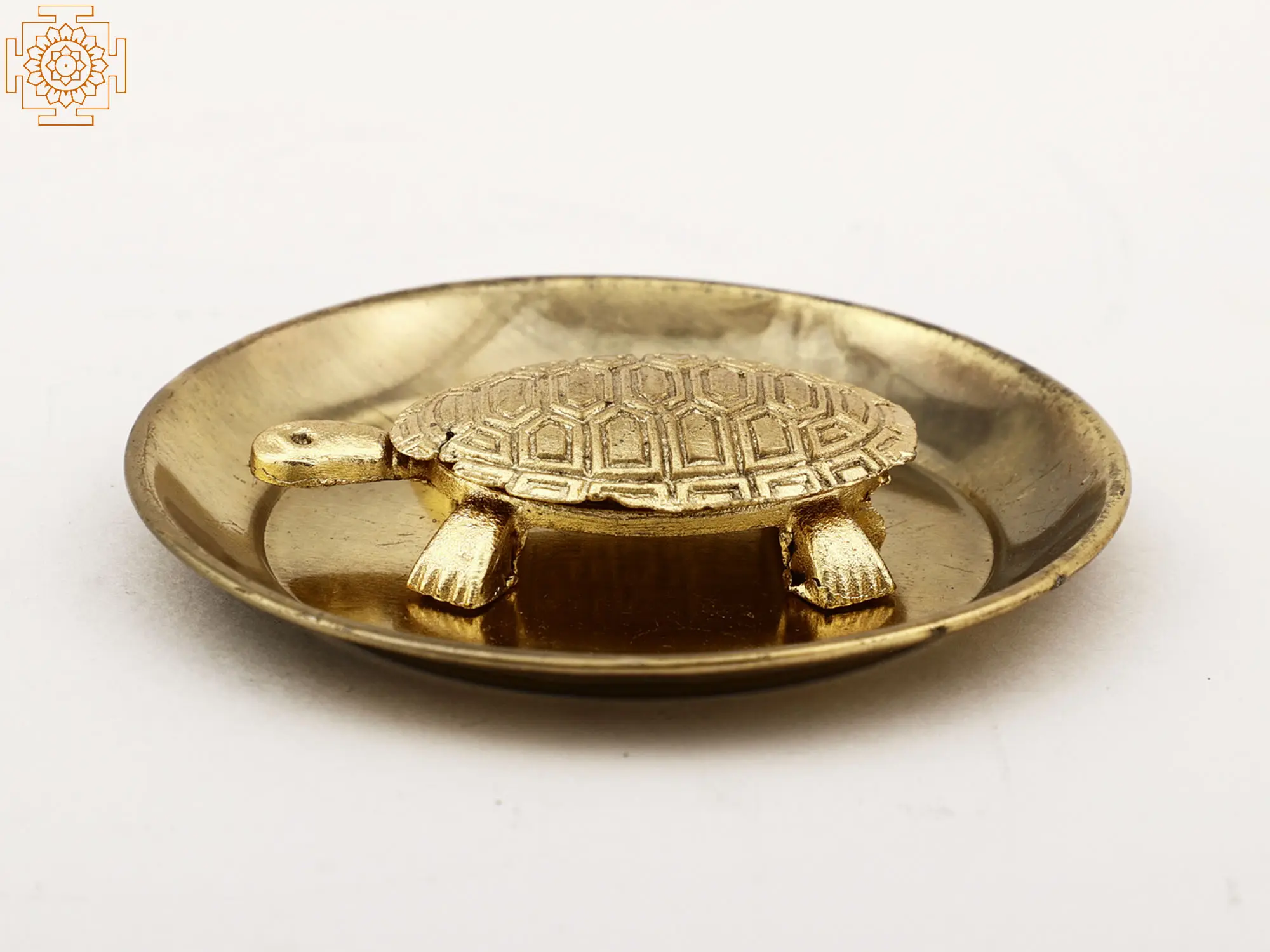5" Small Brass Vastu Tortoise with Ganesha on Top | Handmade