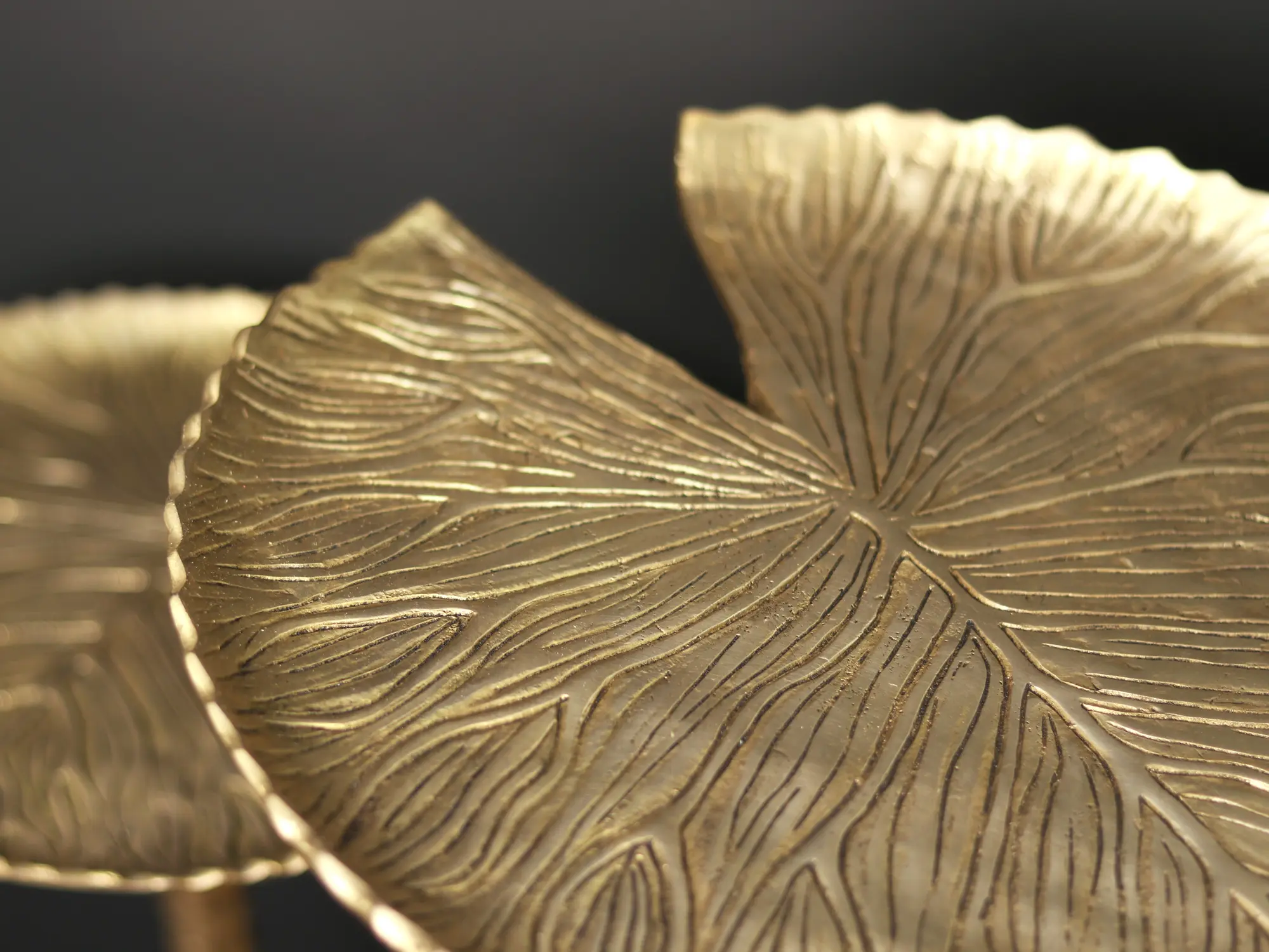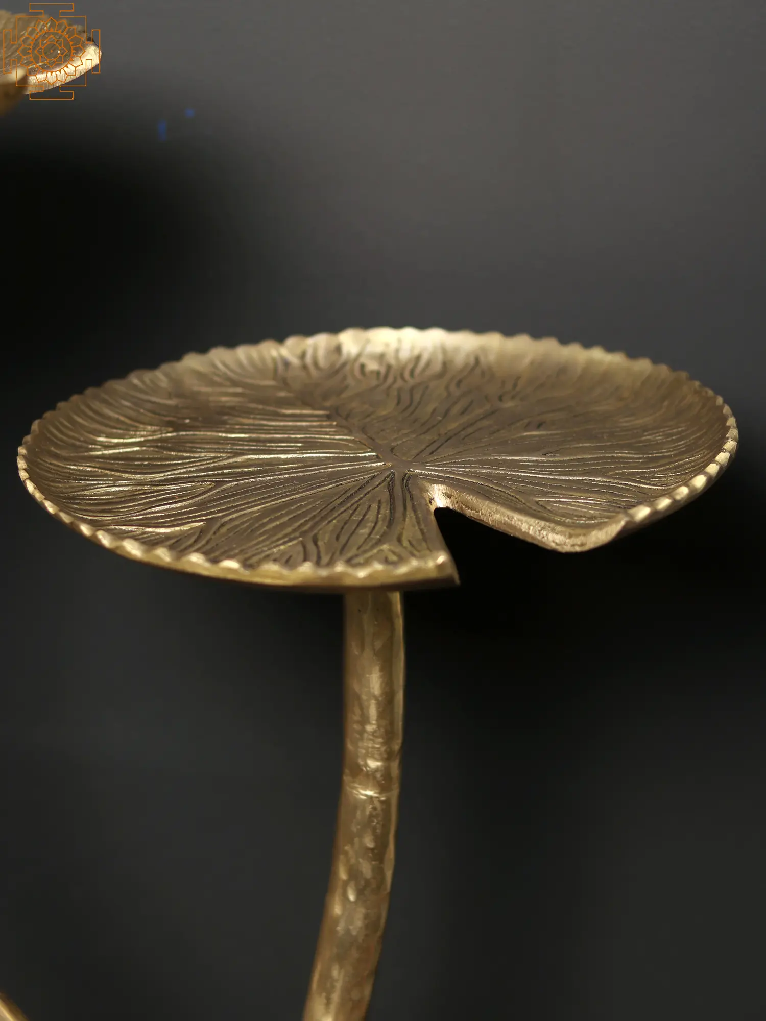 This gorgeous stand is designed to showcase the grace and charm of lotus leaves, making it a captivating addition to any room. Designed to be a versatile centerpiece that can be displayed on any flat surface, its sturdy construction ensures stability, allowing you to showcase it on a mantel, shelf, or table with confidence. The polished brass finish enhances its presentation, giving a statement of elegance to your space.