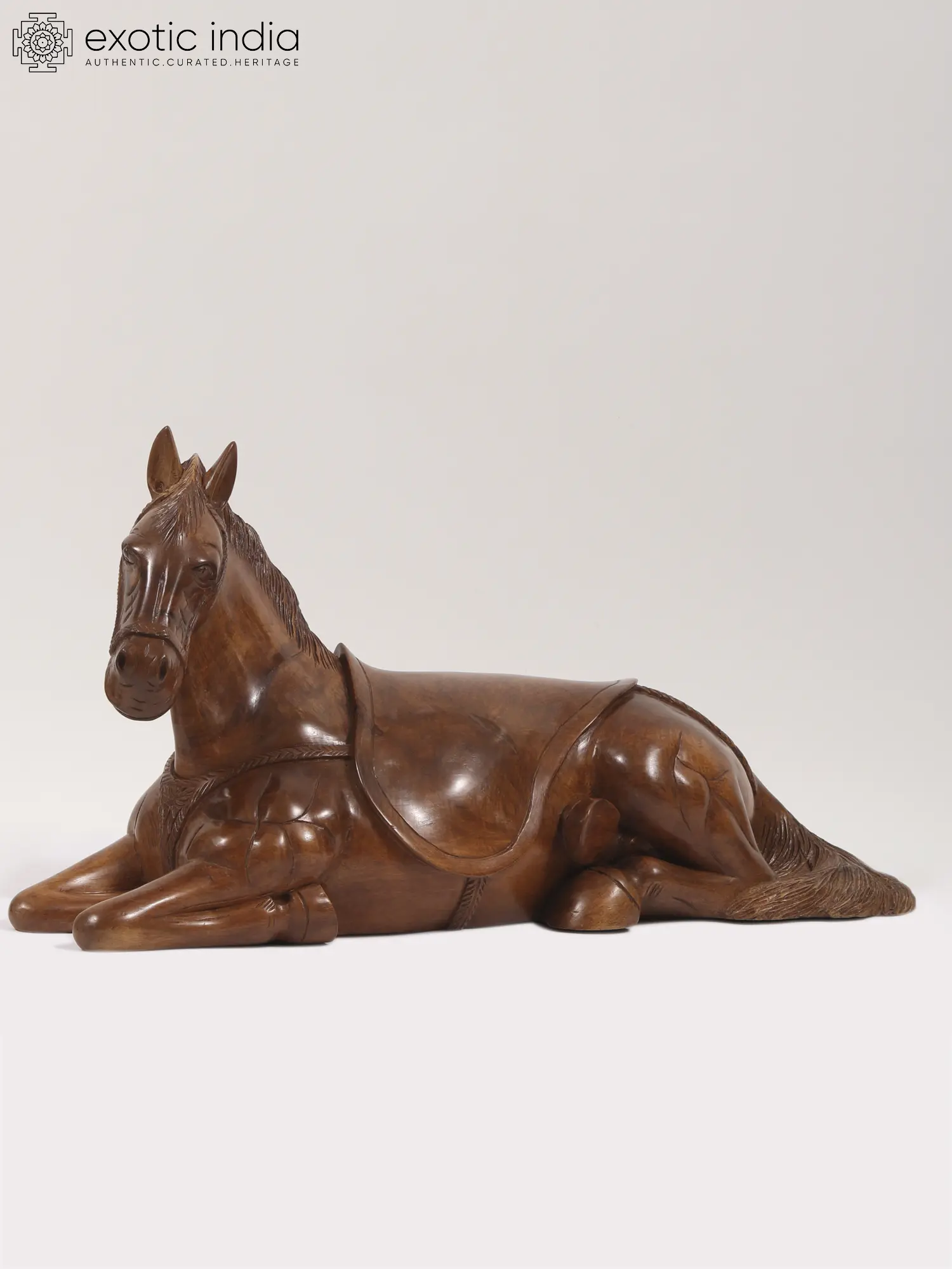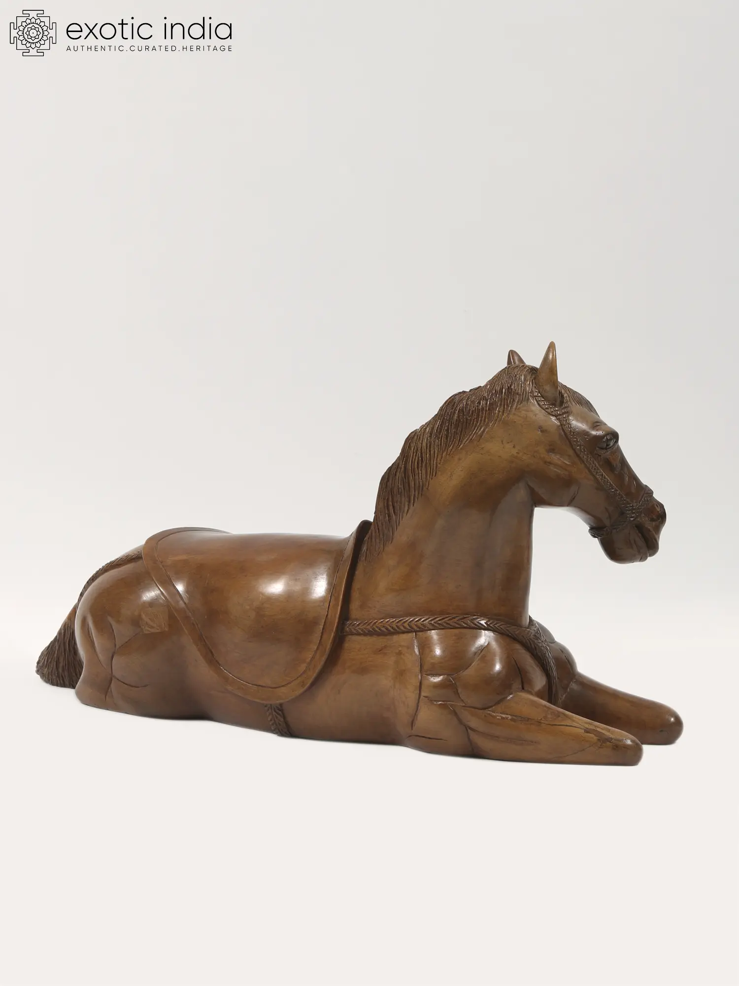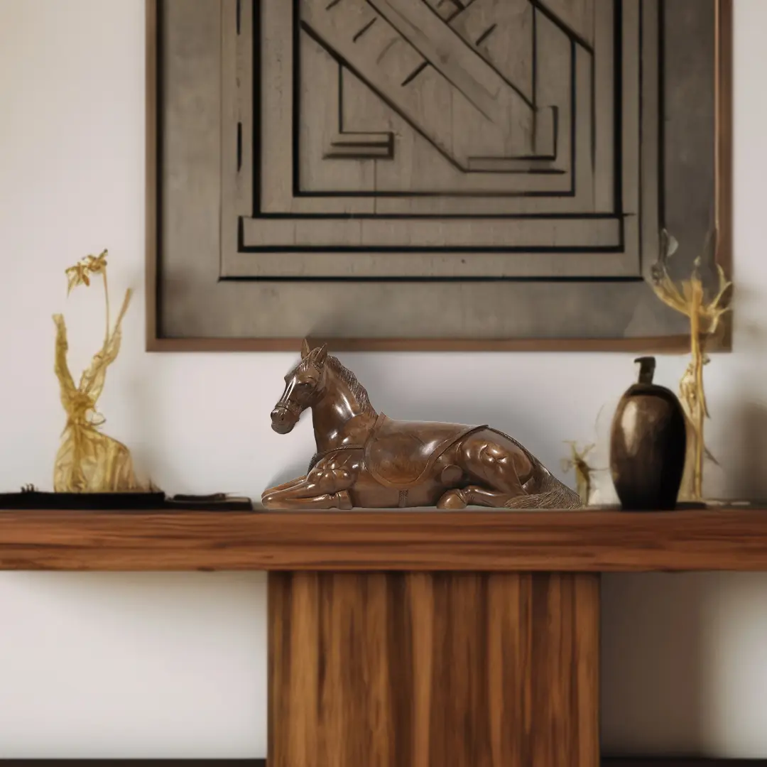 Every detail, from the intricately carved mane and tail to the finely sculpted muscles and hooves, reflects the artisan's skill and dedication. Sitting horse figurines are often associated with strength, power, and grace. It's also a tribute to the exquisite wood carving tradition of Kashmir, known for its beauty and artistry.