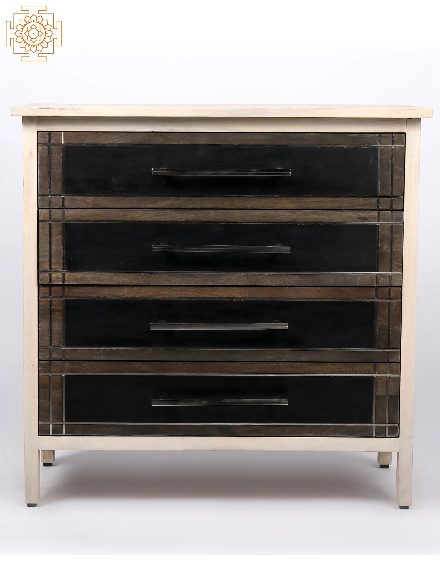A wood and iron four-drawer chest cabinet is a must-have addition to any home. The classic design is perfect for all your needs, whether it’s storing household items or important documents. This modern-styled wardrobe will surely stand out from the crowd of other chests in your house. This four-drawer cabinet is perfect for storing clothes, linens, and more. Crafted from wood and iron, it features clean lines and classic styling that you can depend on. Choose from several different finishes to give this piece a unique look that matches your decor. With a rustic and vintage look, this piece will be sure to add charm to your space.