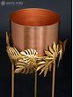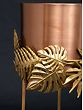 The rich rose gold hue of the planter bowl harmoniously contrasts with the warm, golden tones of the intricately designed stand. This contrasting color palette adds depth and visual interest, making it a focal point in any setting. The smooth, polished finish of the rose gold bowl is beautifully juxtaposed with the delicately textured metal leaves, creating a multi-sensory experience that's both visually appealing and tactilely engaging. This exquisite interplay of textures and colors makes this planter a truly unique addition to any home decor scheme. Whether you prefer a minimalist approach or a more eclectic style, this planter effortlessly complements a multitude of design aesthetics.