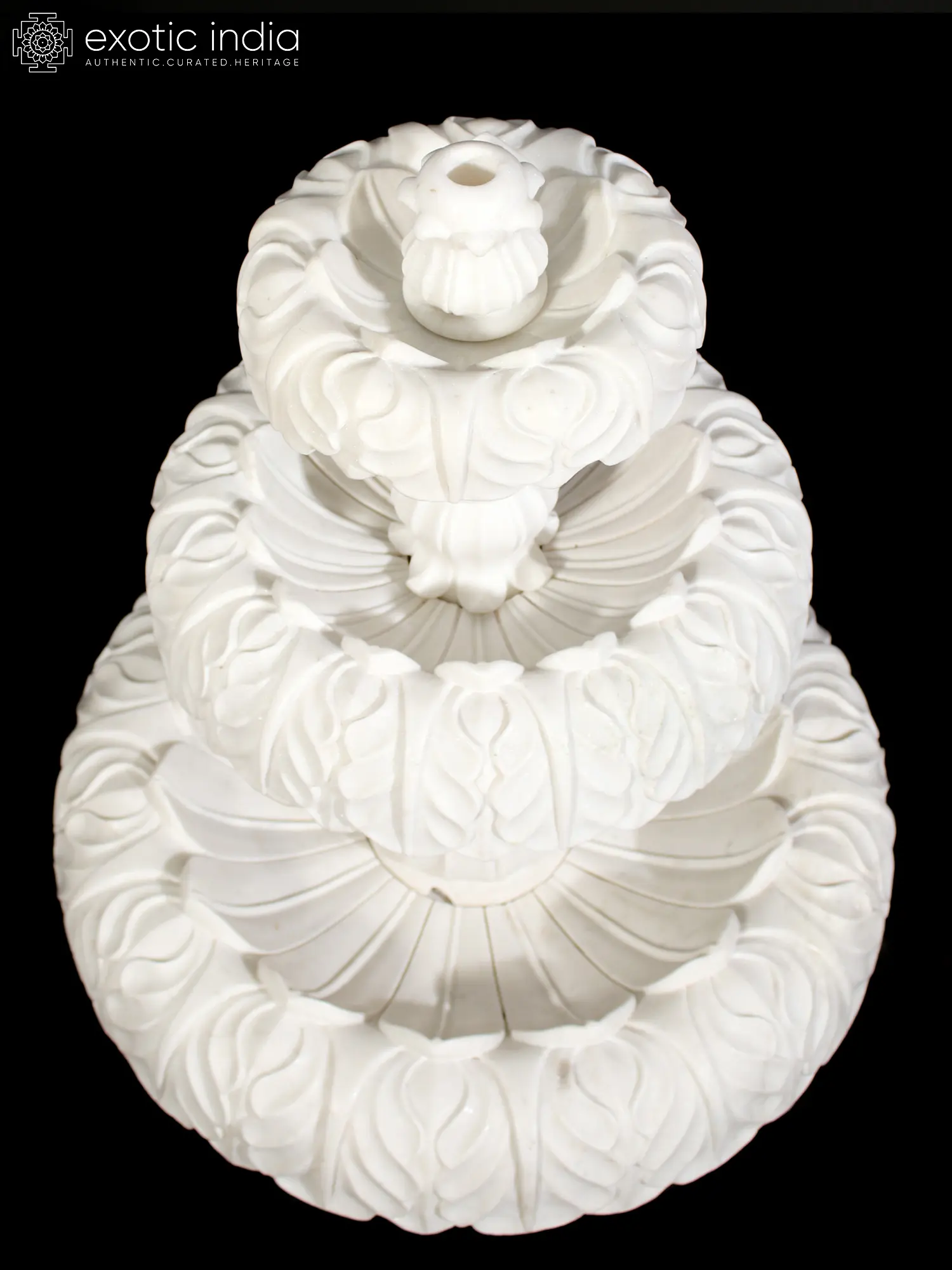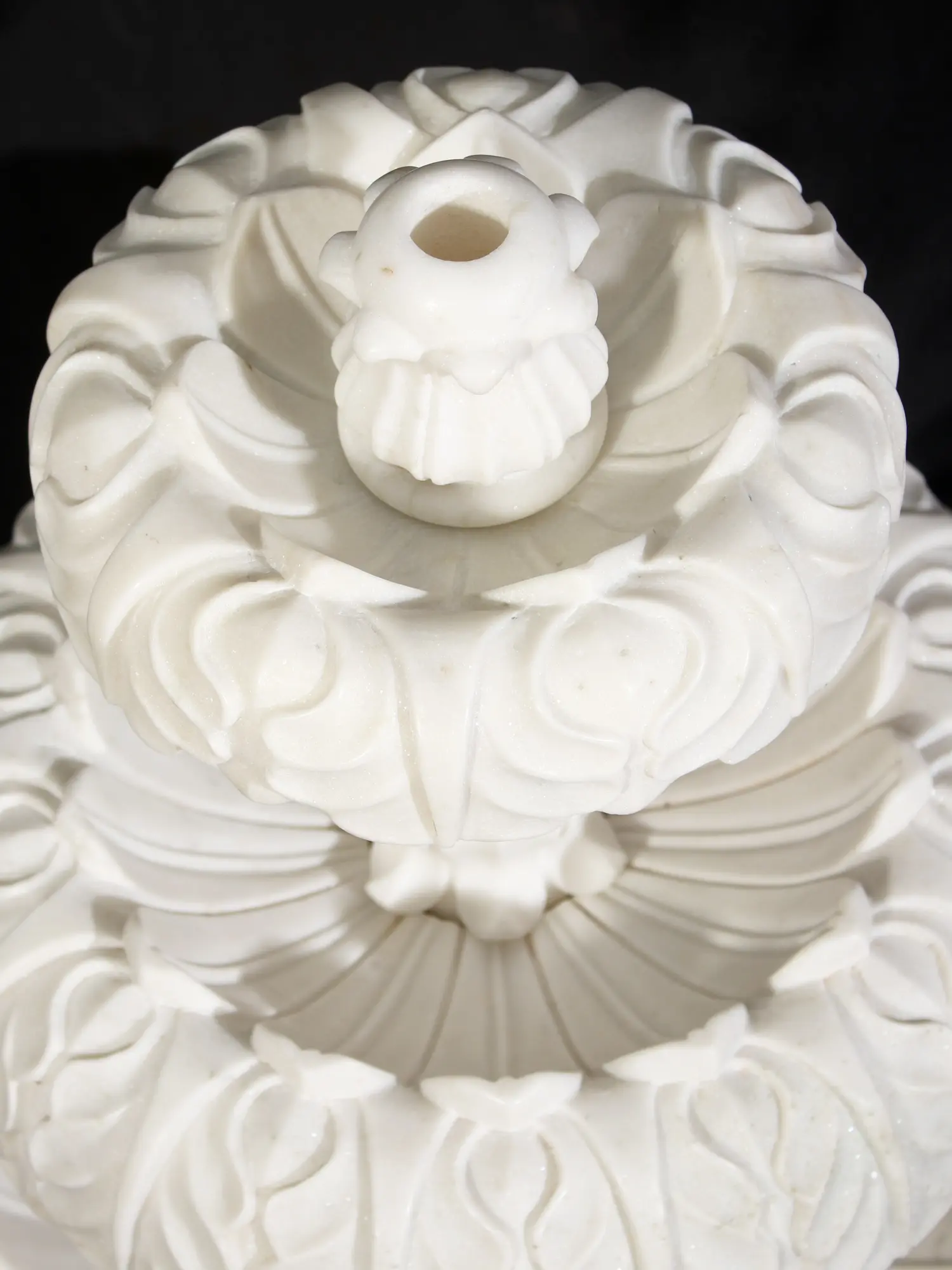 Symbolizing luxury and sophistication, these fountains evoke a sense of tranquility and offer a focal point for gardens, courtyards, or public spaces. The durable nature of white marble ensures longevity, with the material's natural beauty enhancing over time. It transports the beholder to a serene oasis and allows them to enhance the look of their space.