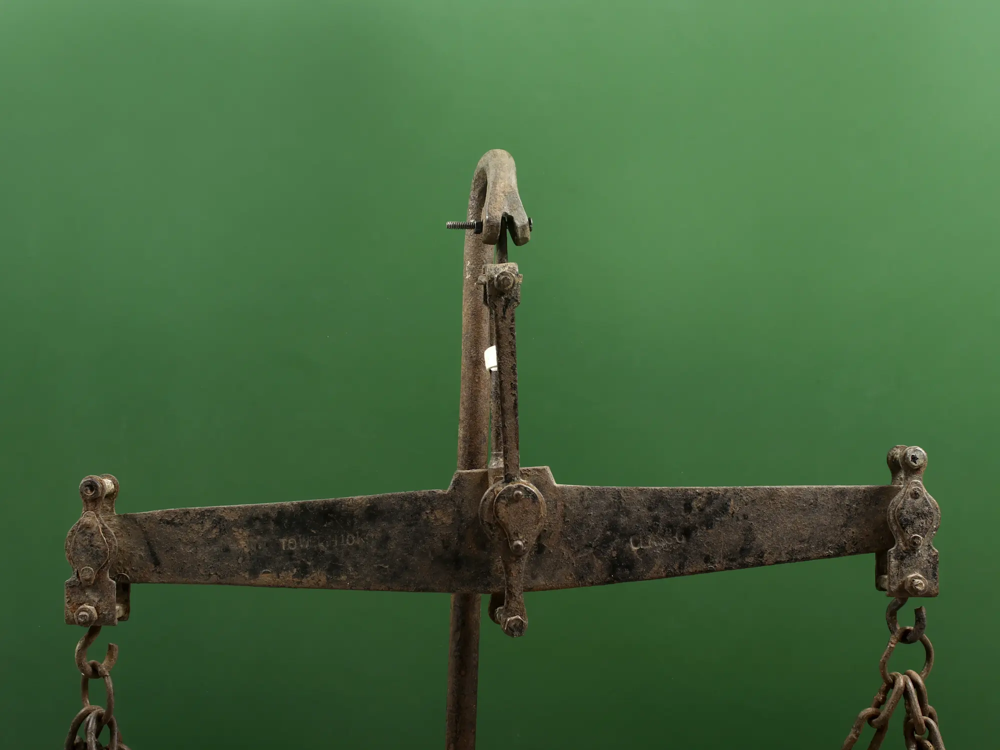 The robust construction of this balance scale is a testament to its enduring quality. The iron, with its inherent strength and ability to develop a rich patina over time, lends an air of authenticity and gravitas to the piece. The chains, connecting the sturdy base to the invitingly broad pans, are intricately linked, showcasing the detailed work that went into its creation. The pans themselves, designed for practical use, are wide enough to accommodate various decorative items, from small potted plants and cherished collectibles to candles or other curios that you wish to display with a unique flair.