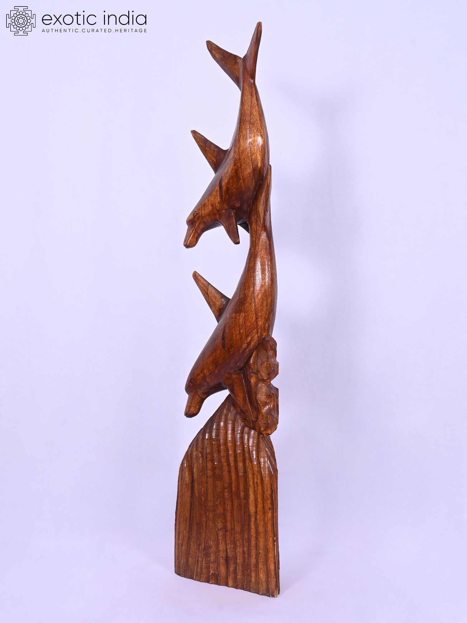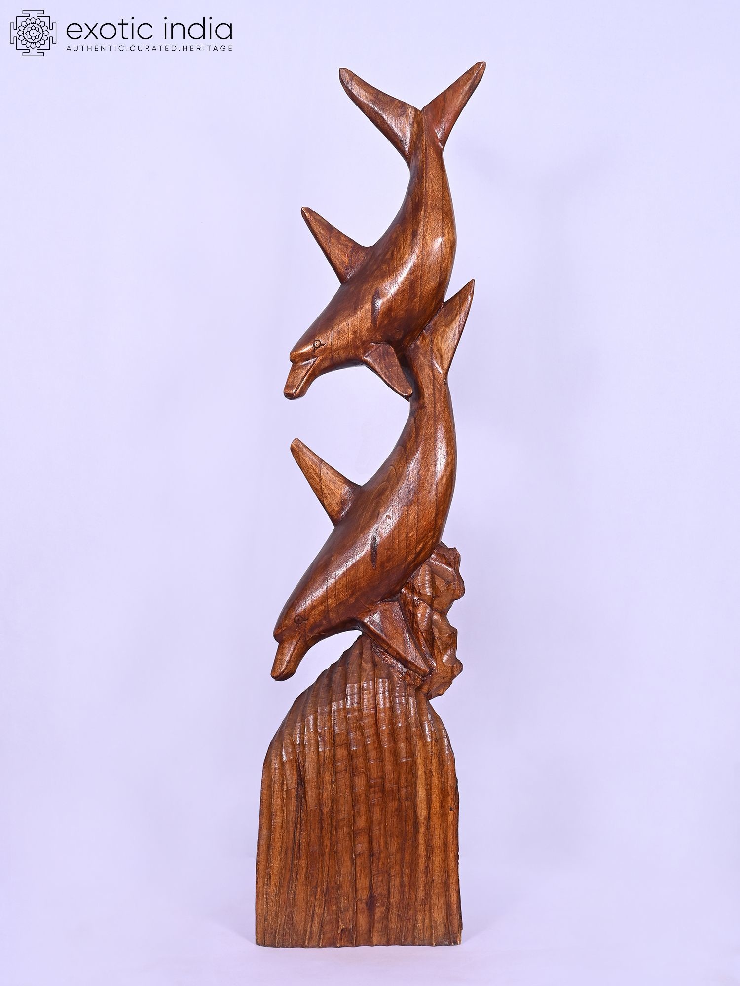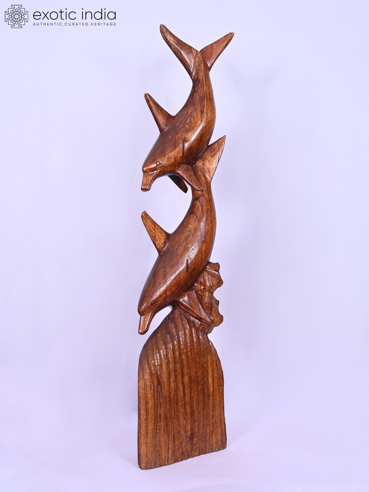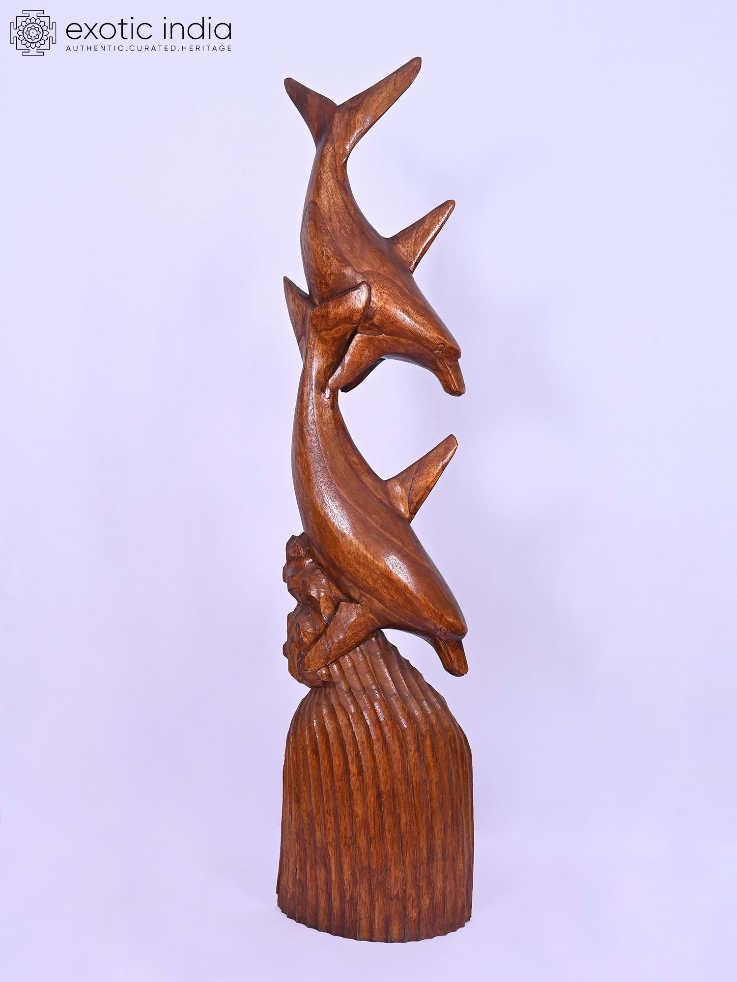 18" Standing Dolphin Statue in Brass with Inlay Work | Table Decor