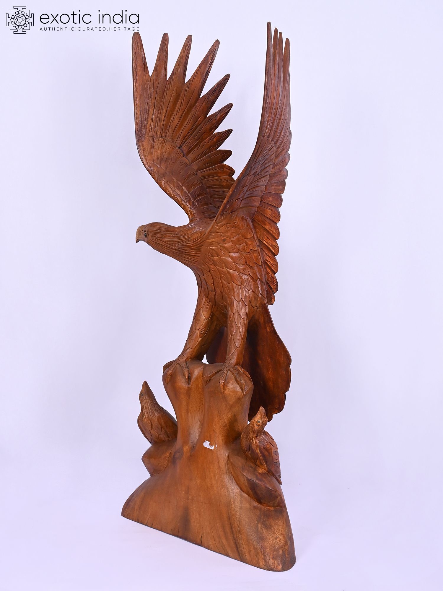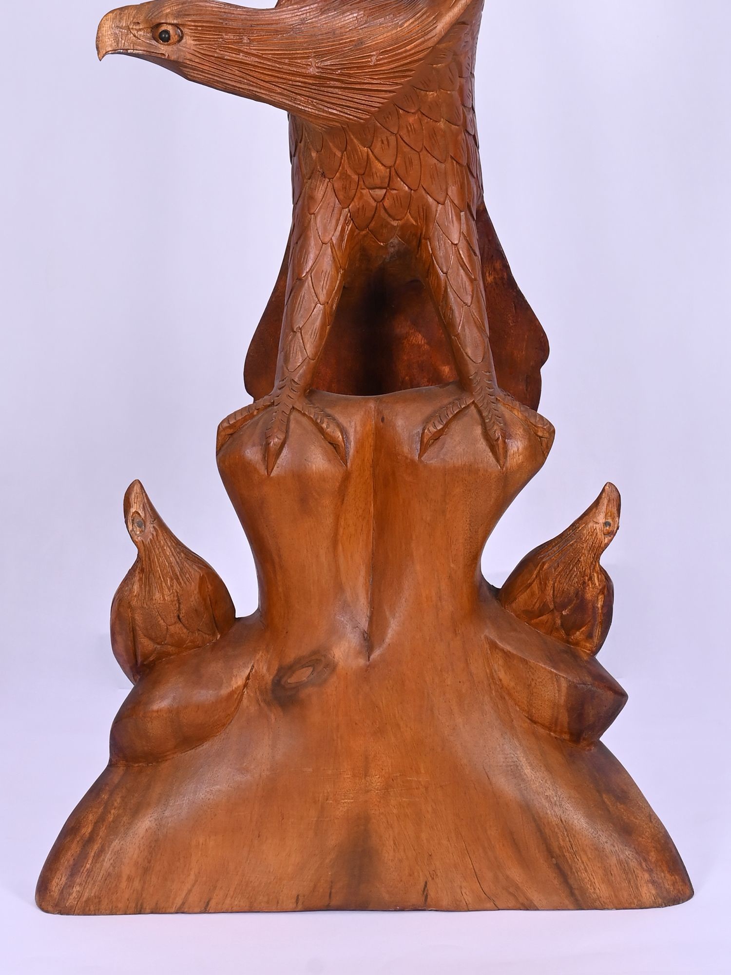 21" Walnut Wood Carved Eagle Hunting a Fish | Home Decor