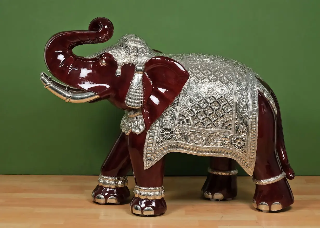 Elephants have been an integral part of the Indian civilization, almost becoming its stamp mark at a point. From Royalty to Religion - this magnificent creature has contributed and still contributes to each aspect of our culture! Looked upon for their will and wisdom, Elephants are considered beneficial imageries to have at home. Covered in traditional Indian silver head crown, blanket, and anklets - this smoothly finished pair of wooden elephants represent triumph and fortune!