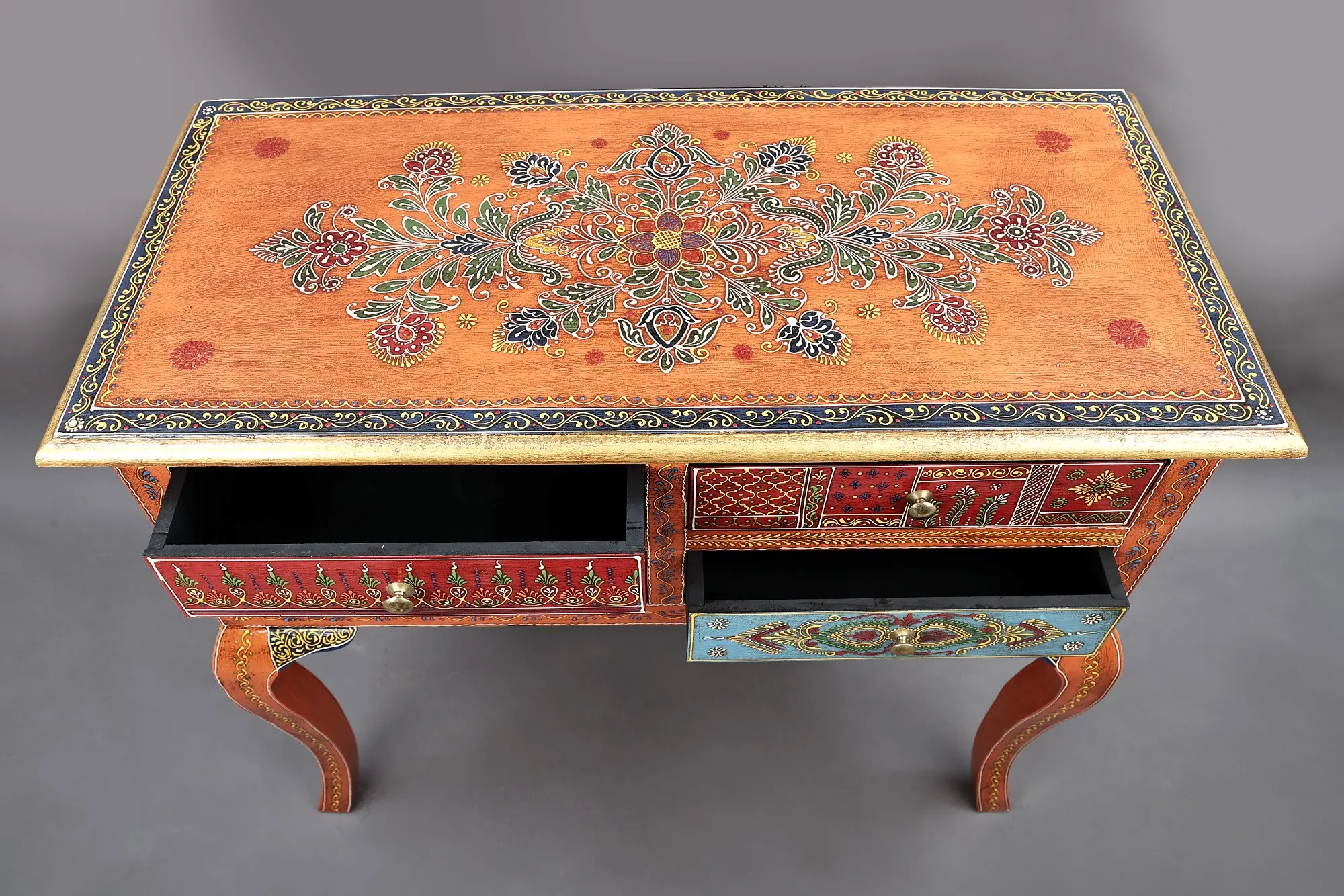 Experience the vibrant charm of India with the Multicolored Indian Design Side Table with Multi Drawer. Handcrafted with love and passion, this side table is a true reflection of Indian artistry. Made from high-quality wood, it combines functionality with aesthetics. The multicoloured design and intricate patterns add a burst of colour to any room. The multiple drawers provide ample storage space for your essentials, keeping your space organised and clutter-free. Embrace the beauty of handmade art and add a touch of India to your living space with this exquisite side table.