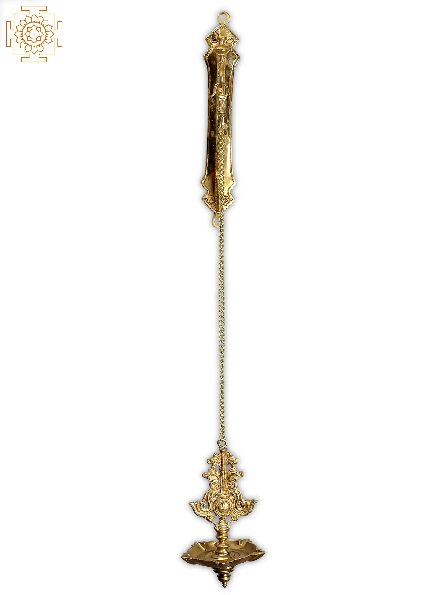 This hanging diya (oil lamp) features a beautifully crafted brass parrot perched on the bracket, symbolizing beauty, grace, and auspiciousness in Indian culture.