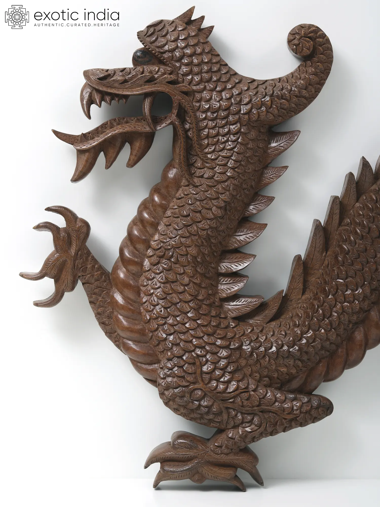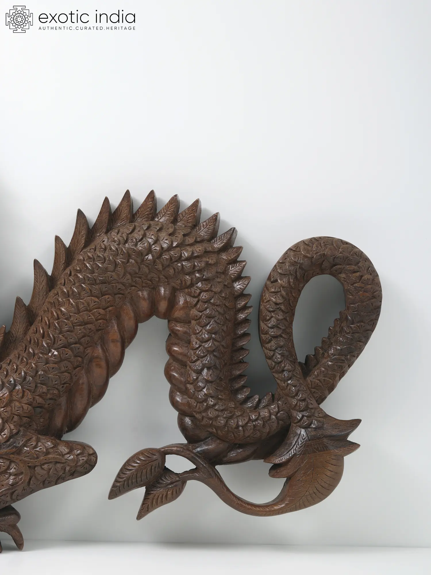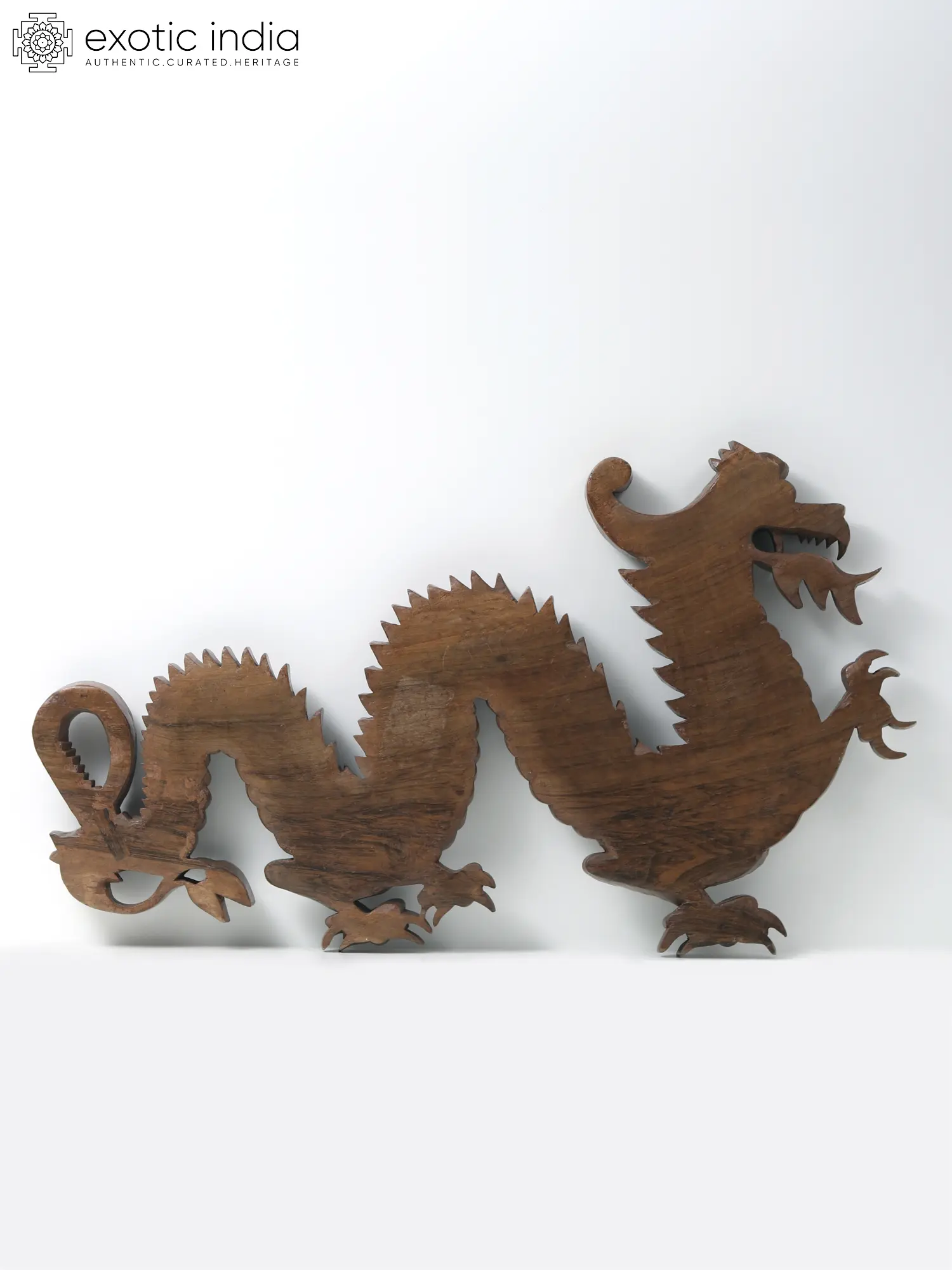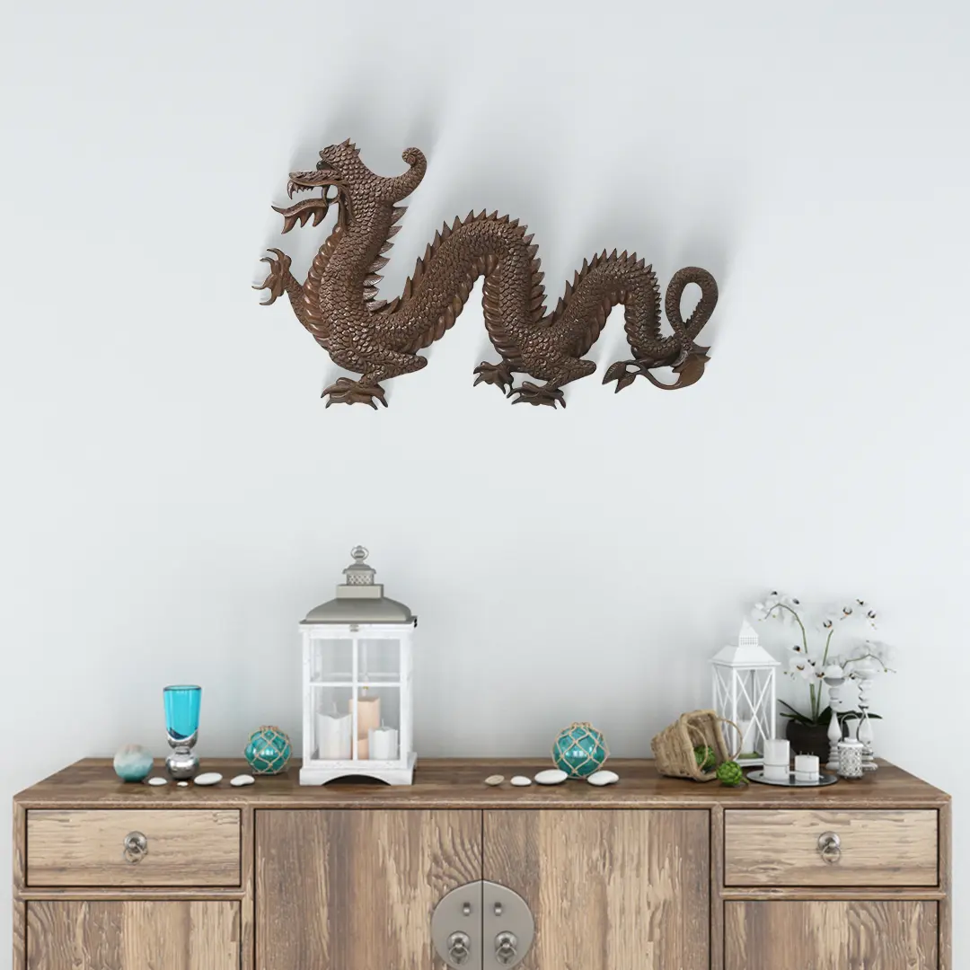 Step up your home decor game with the exquisite beauty of this masterfully carved Chinese Dragon Figurine in Kashmiri Walnut wood. Every intricate detail comes to life through the art of Vaboraveth or Deep Carving, showcasing the dragon's wisdom, authority, prosperity, health, and protective symbolism in Chinese culture.