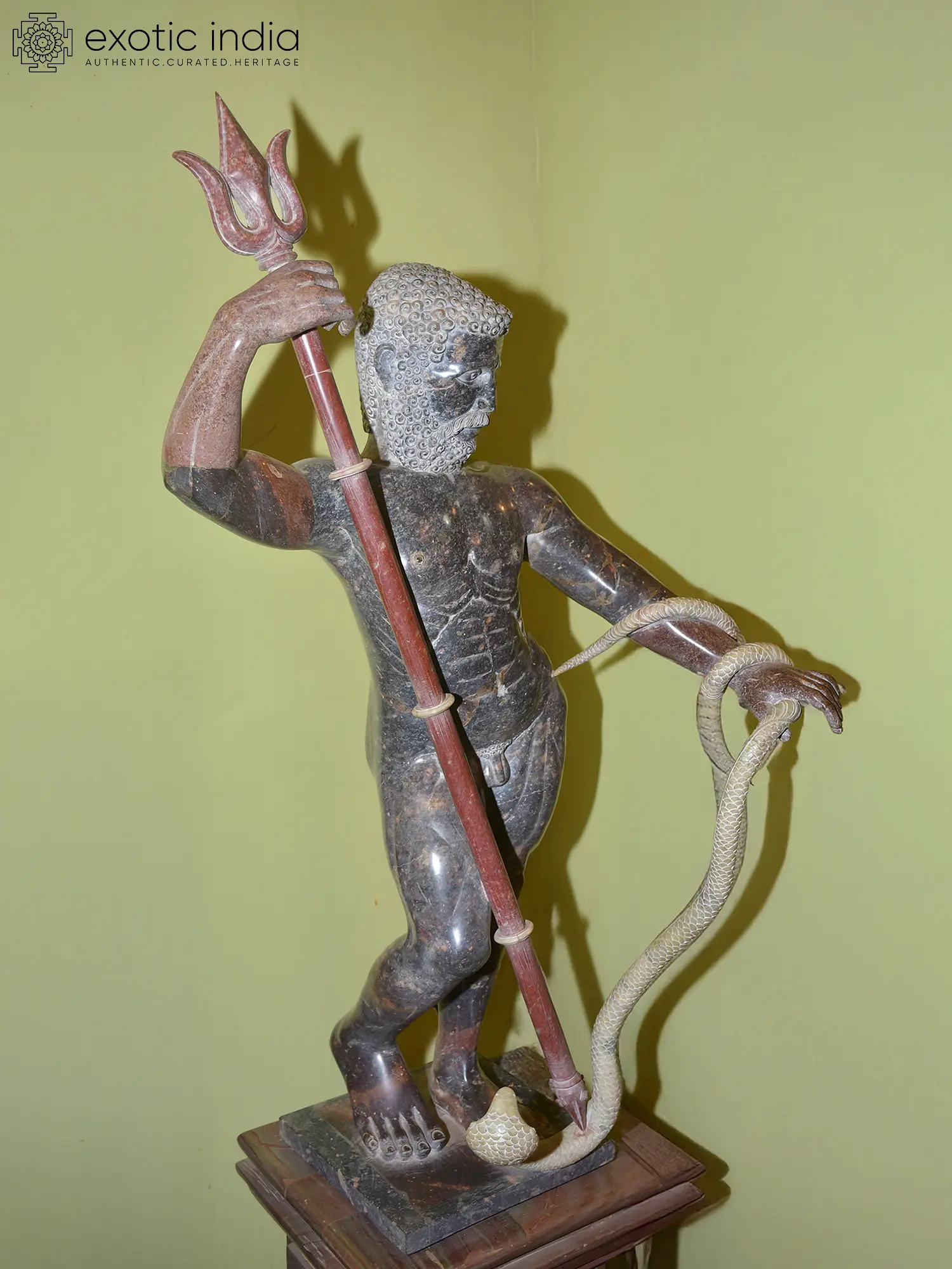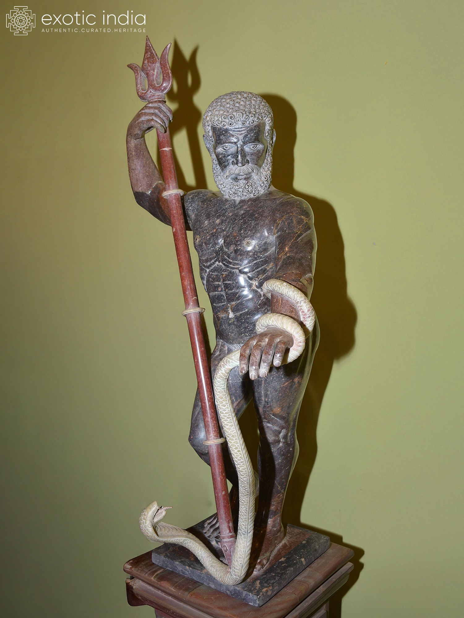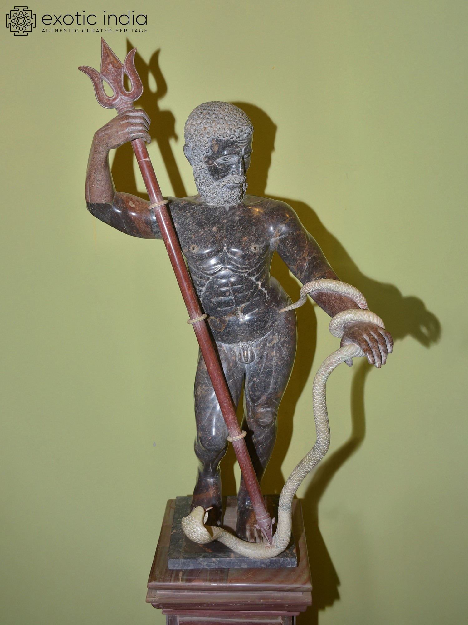 16" Hercules with Trident - Greek Figure Sculpture | Orissa Stone | Exquisite Handmade Indian Art