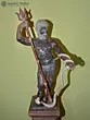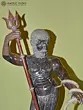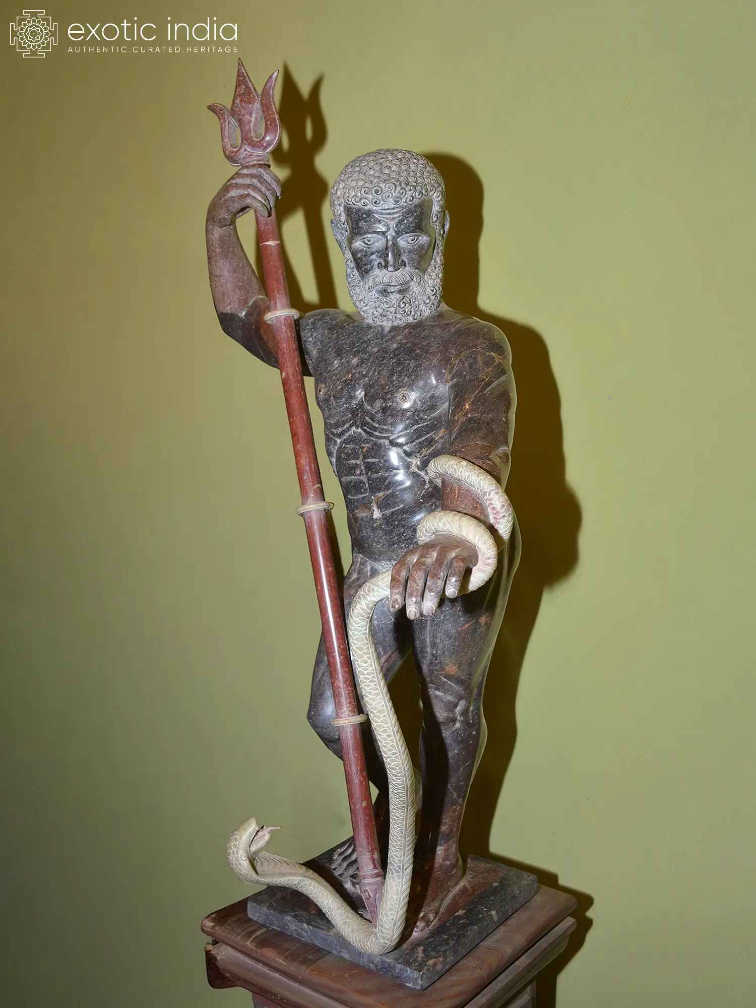 The figure is depicted in a dynamic pose, exuding confidence and authority. In one hand, it firmly grasps a trident, the iconic symbol of oceanic and terrestrial dominion, often associated with powerful deities. The other arm is entwined with a serpent, a creature that symbolizes transformation, rebirth, and primal energy, further enhancing the mystique and power of the sculpture. The musculature is rendered with meticulous precision, emphasizing the robust physique of the figure, and the sculpted beard and hair add to its regal and formidable appearance.