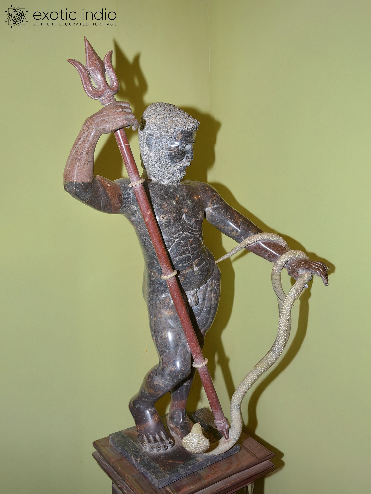 This sculpture serves as a powerful statement piece for any discerning collector or enthusiast of art and mythology. Its timeless appeal lies in its ability to connect with ancient stories and evoke a sense of awe. Whether placed in a grand living room, a sophisticated study, or a dedicated art space, this Orissa stone rendition of a powerful deity will undoubtedly be a conversation starter and a cherished heirloom for generations to come. It is a piece that speaks of heritage, artistry, and the enduring power of myth.