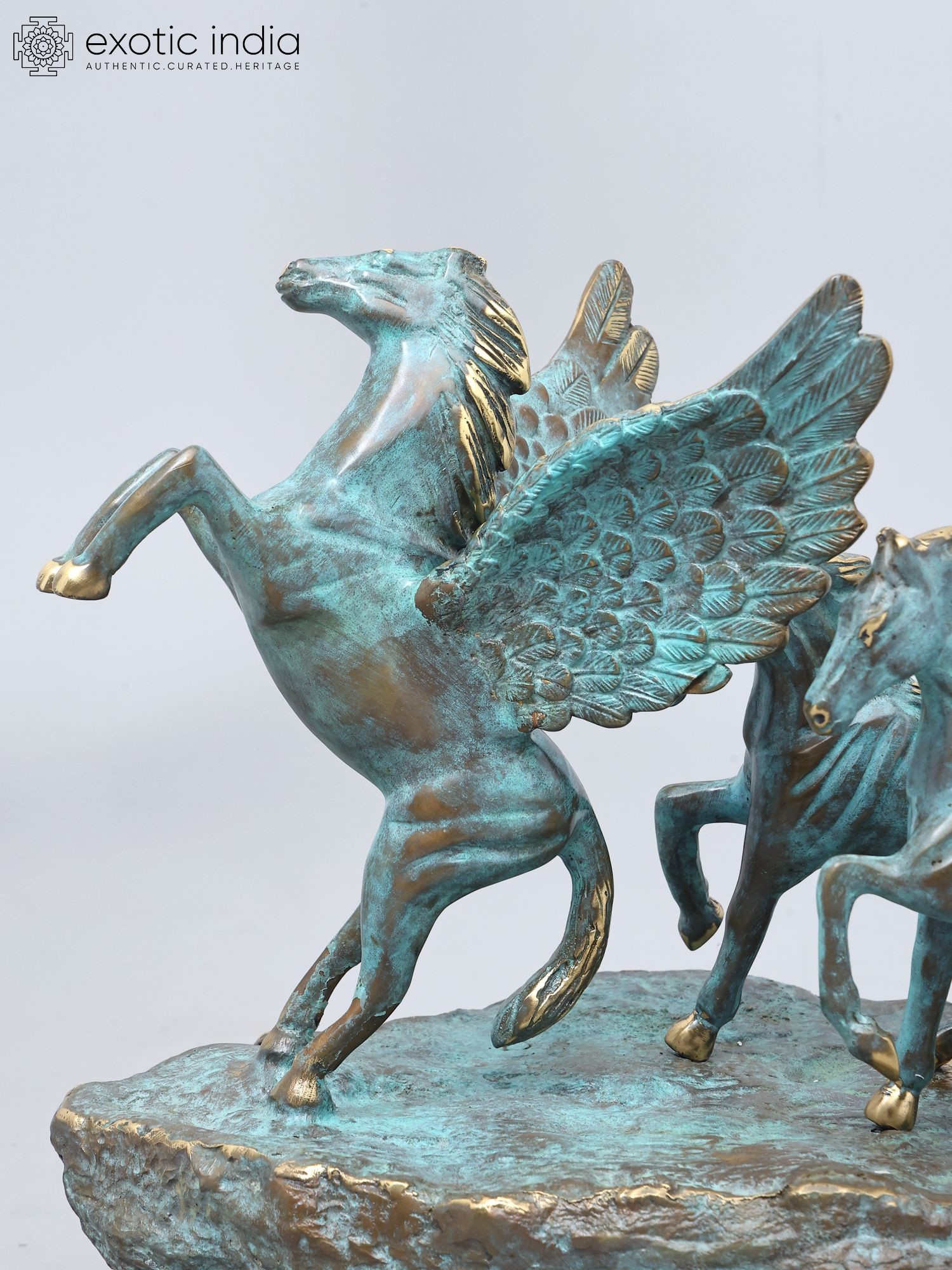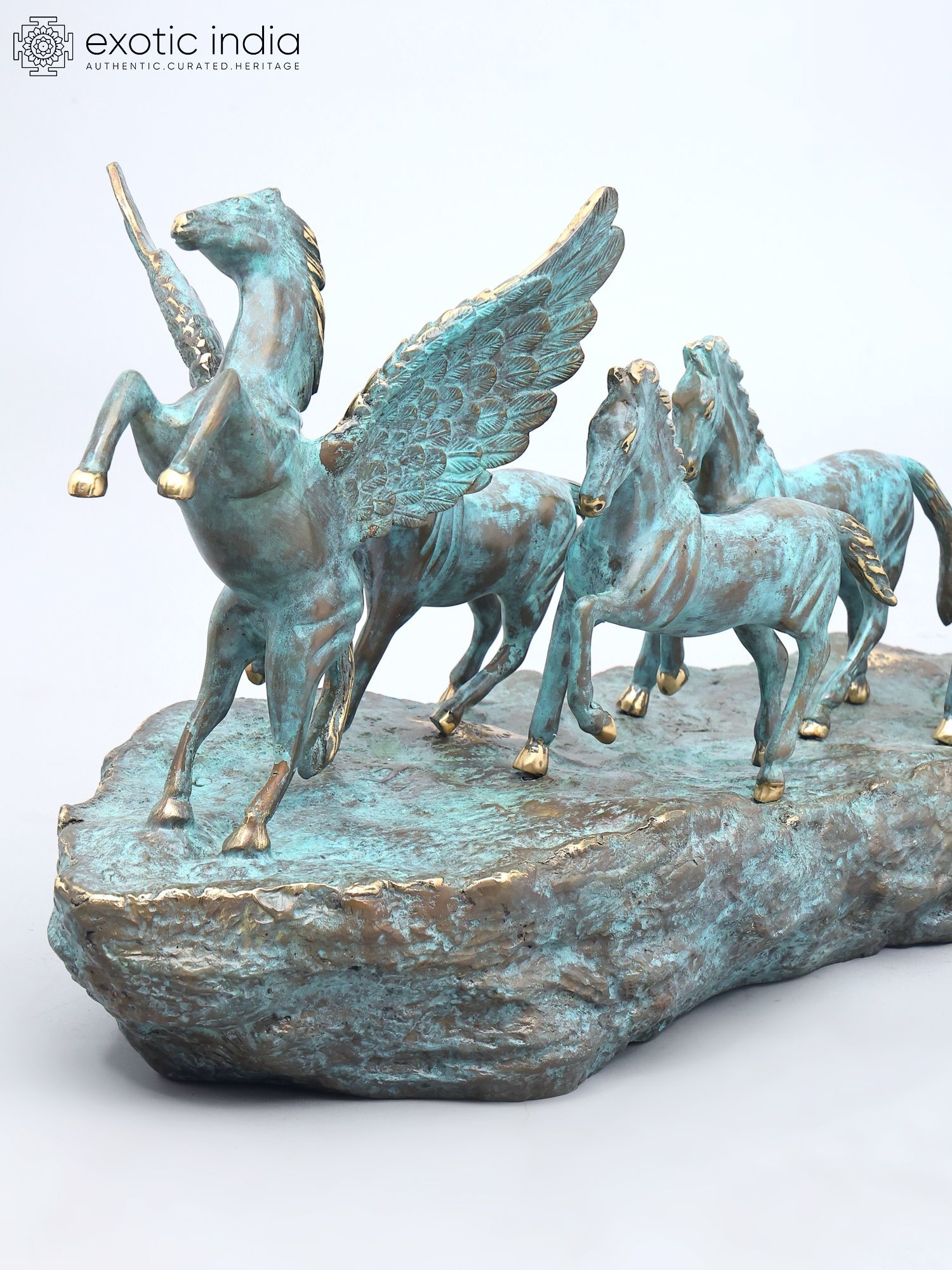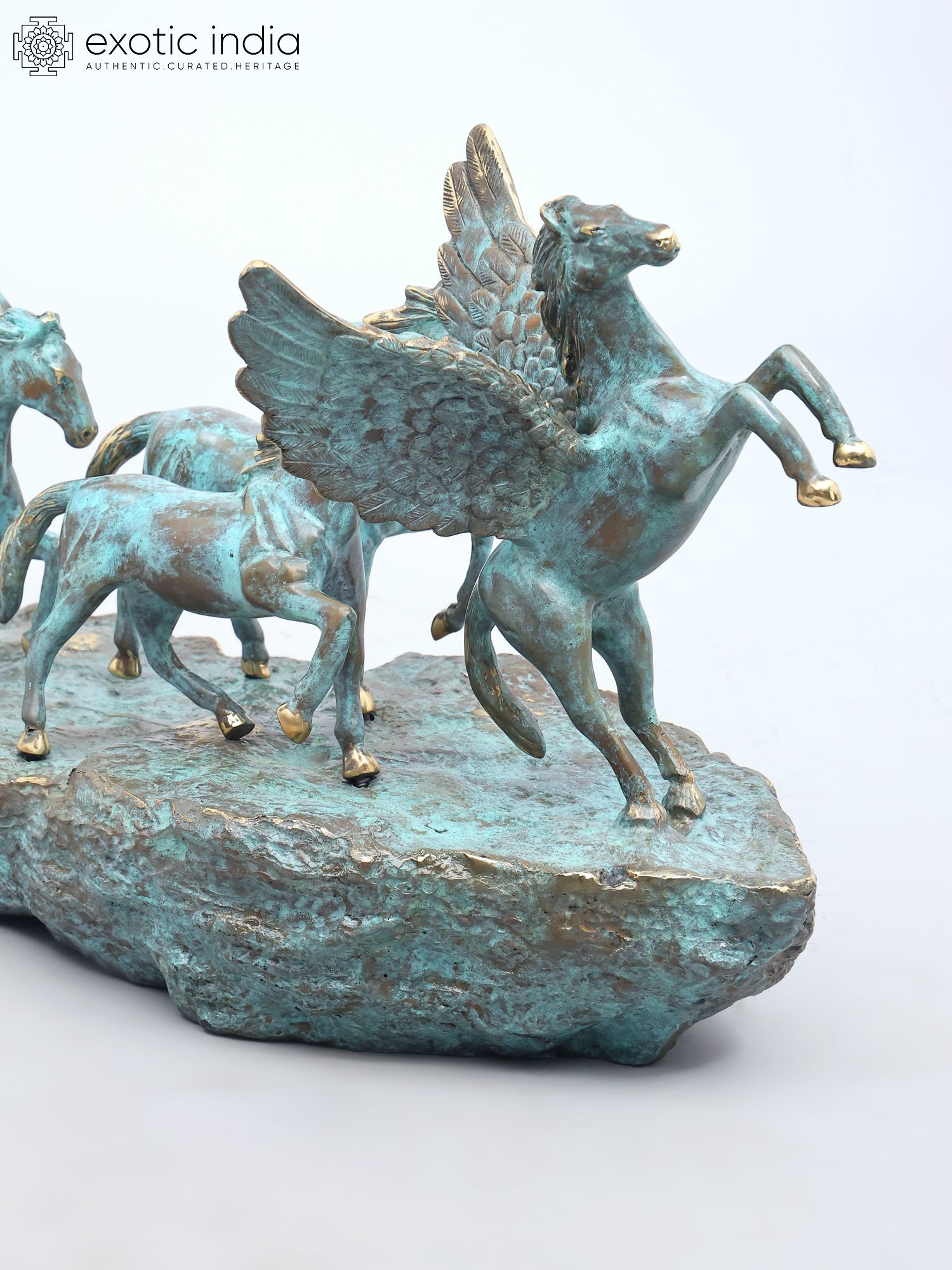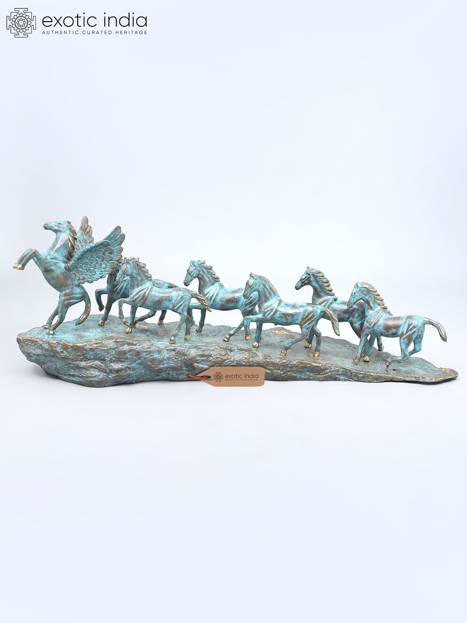 Features a dynamic depiction of seven galloping horses, led by a majestic winged horse.