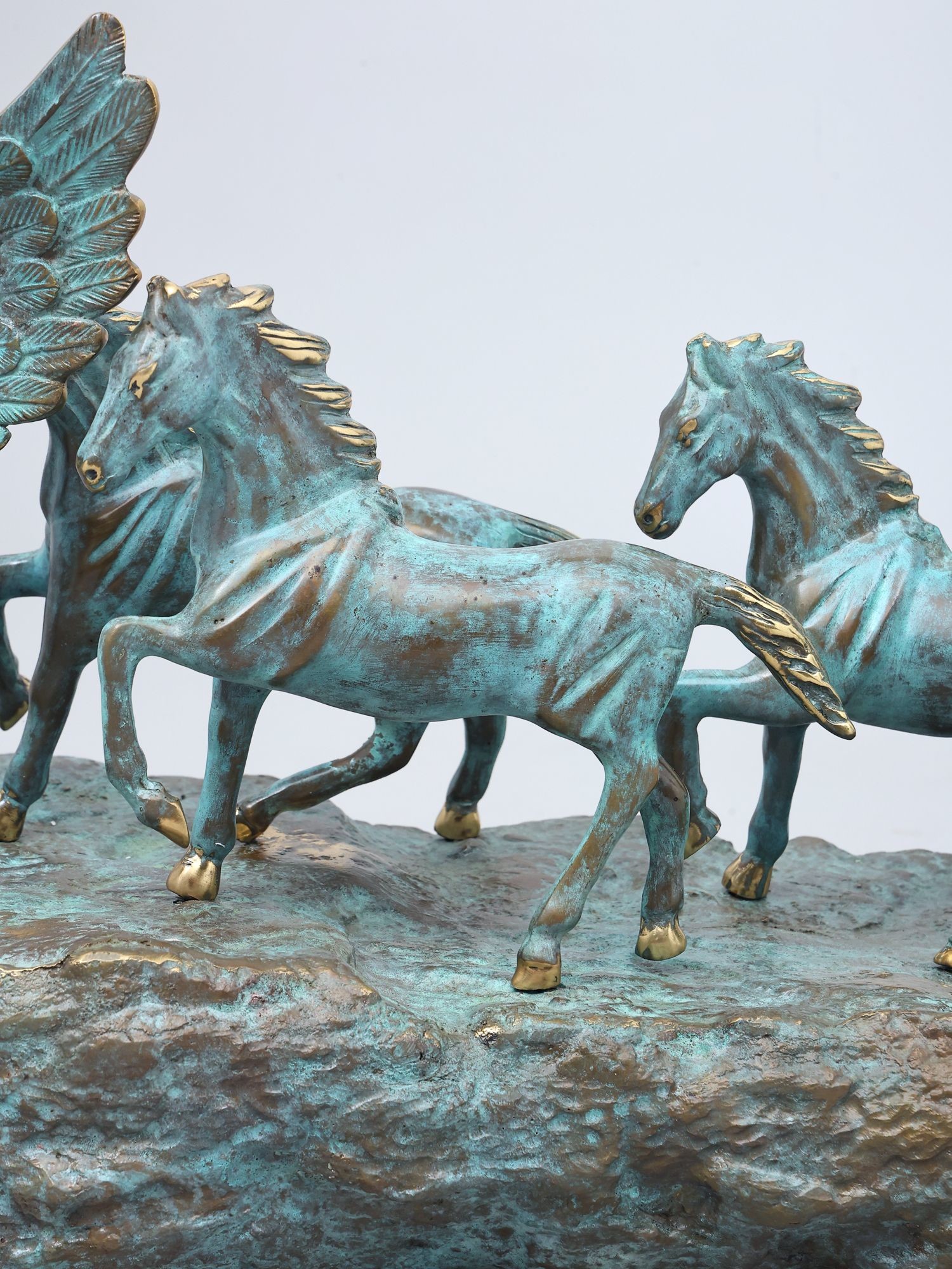 Intricately detailed sculpture capturing the energy and grace of equine movement.