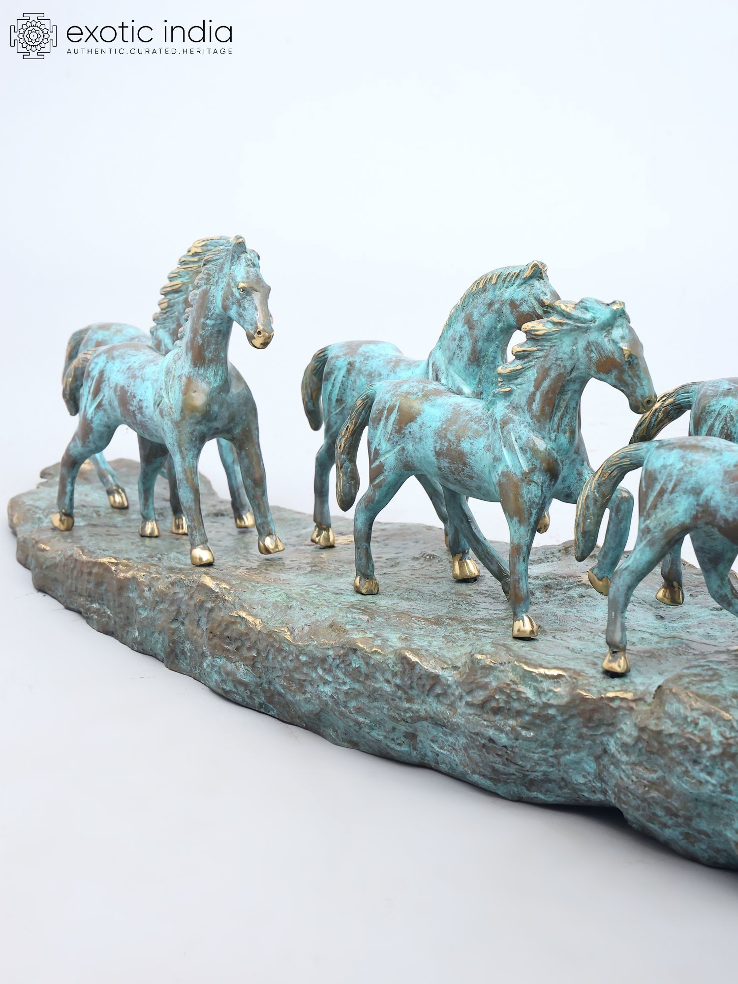 58" Large Seven Galloping Horses | Brass Sculpture