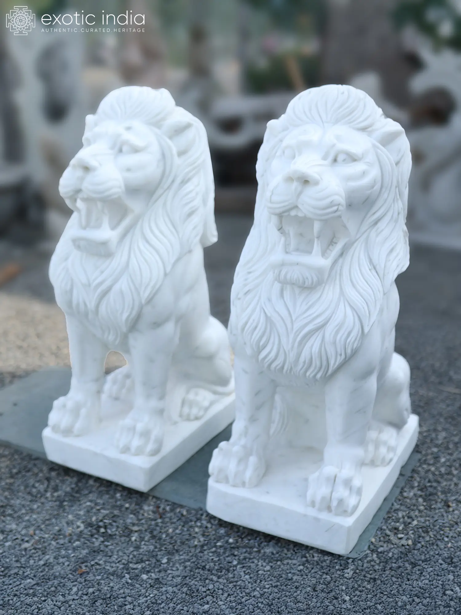 When Power Meets Itself | Lion Pair Statue | White Marble | Exquisite Indian Art
