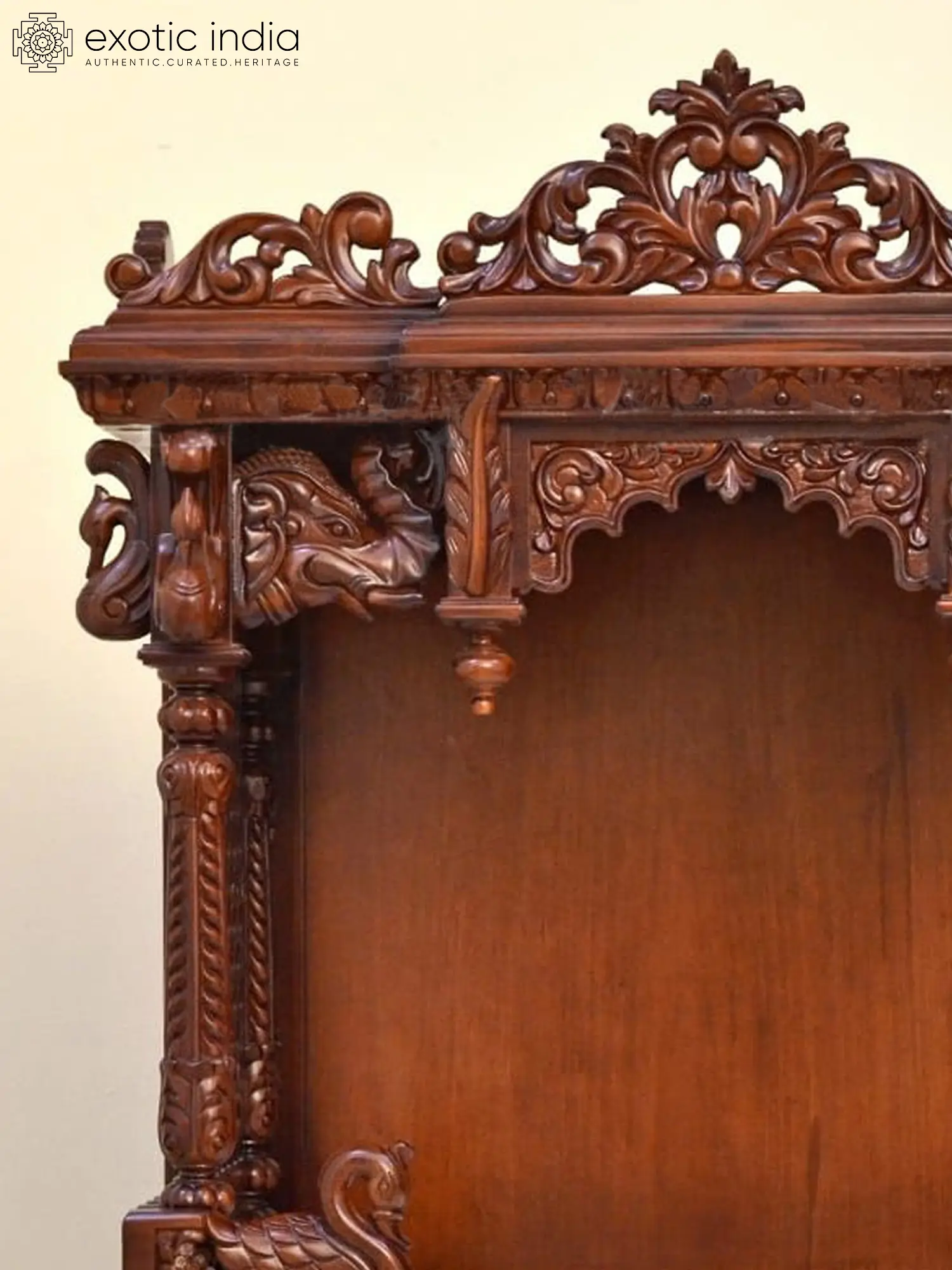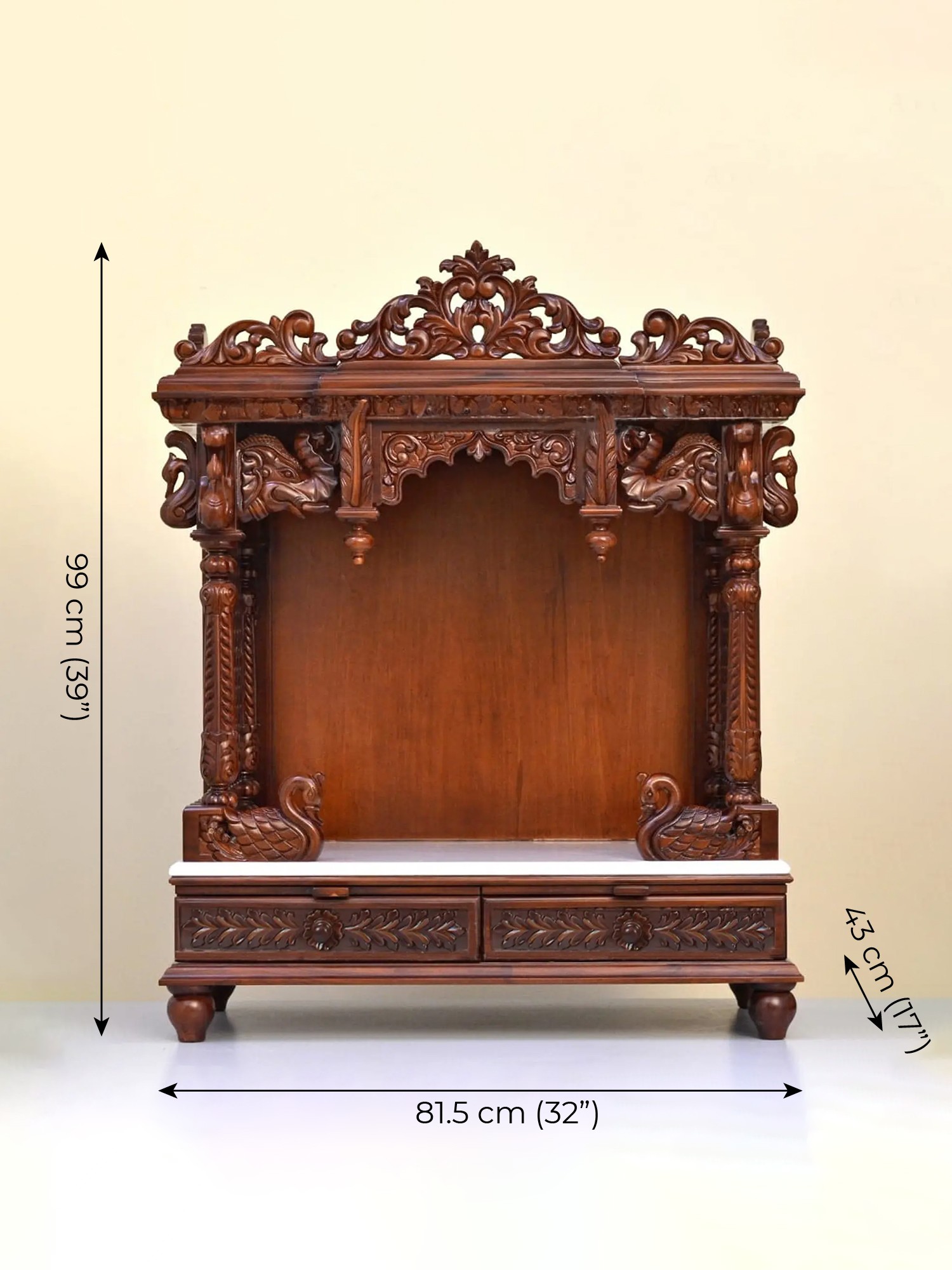 Beyond their aesthetic appeal, these wooden temples serve as a tangible expression of devotion and reverence, allowing individuals to create a sacred and personalized environment for their spiritual practices. The Large Wood Carved Swan Design Temple, with its double drawers, exemplifies the legacy of fine craftsmanship and devotion embedded in the tradition of wooden temples in India.