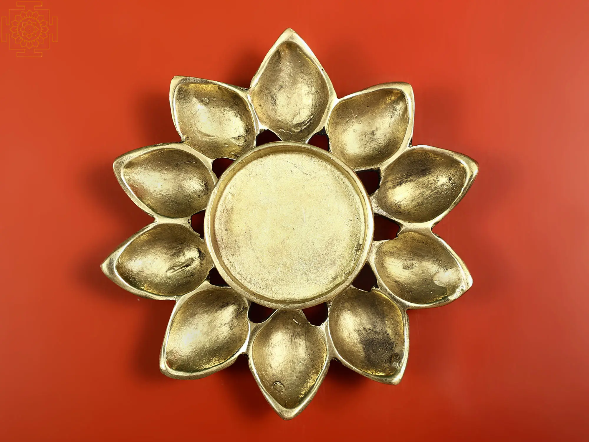 13" Wood Carved Designer Candle Stand with Brass Bells | Home Decor