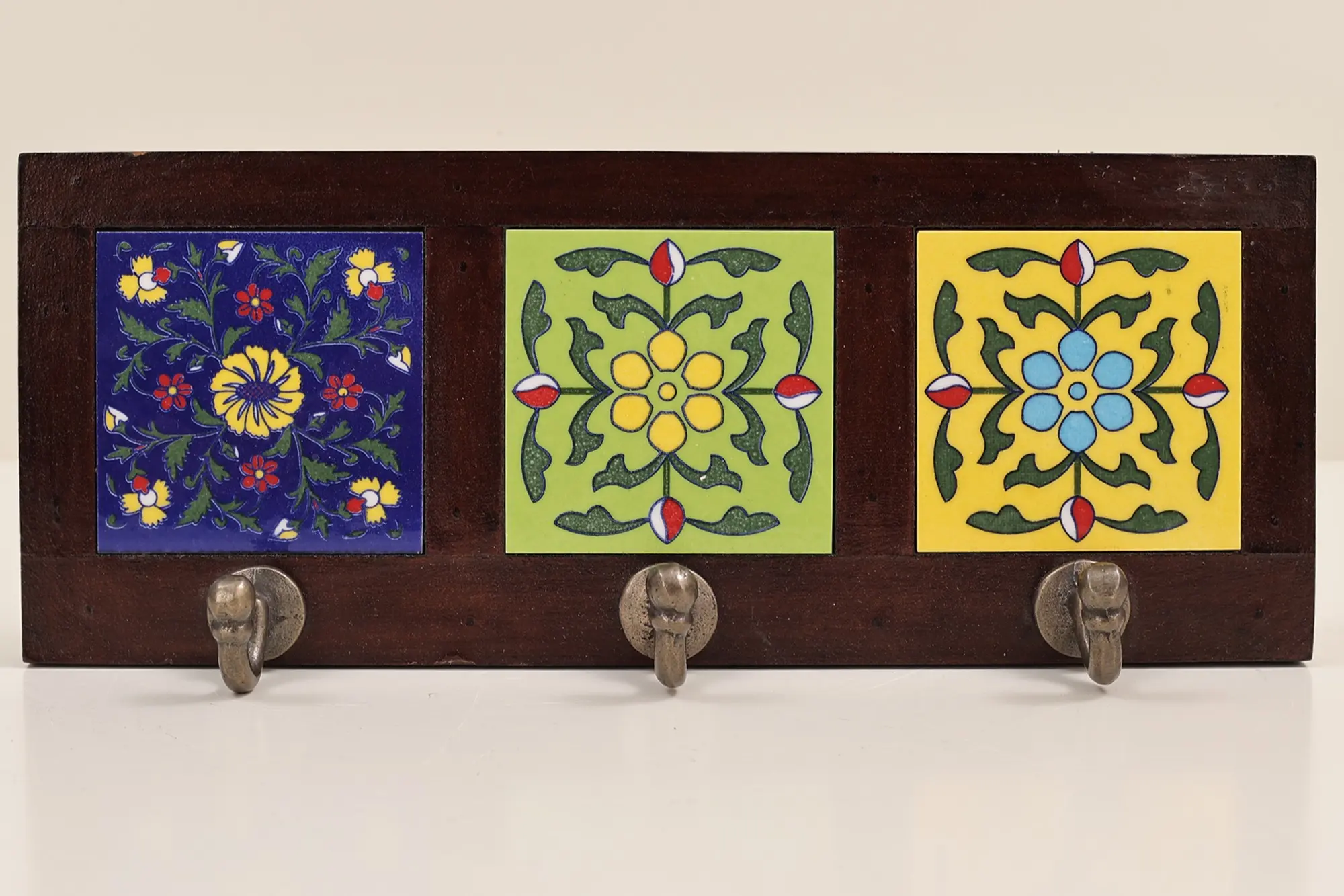 12" Elephants In The Jungle - Key Holder With Five Hooks | Rosewood Panel With Inlay Work