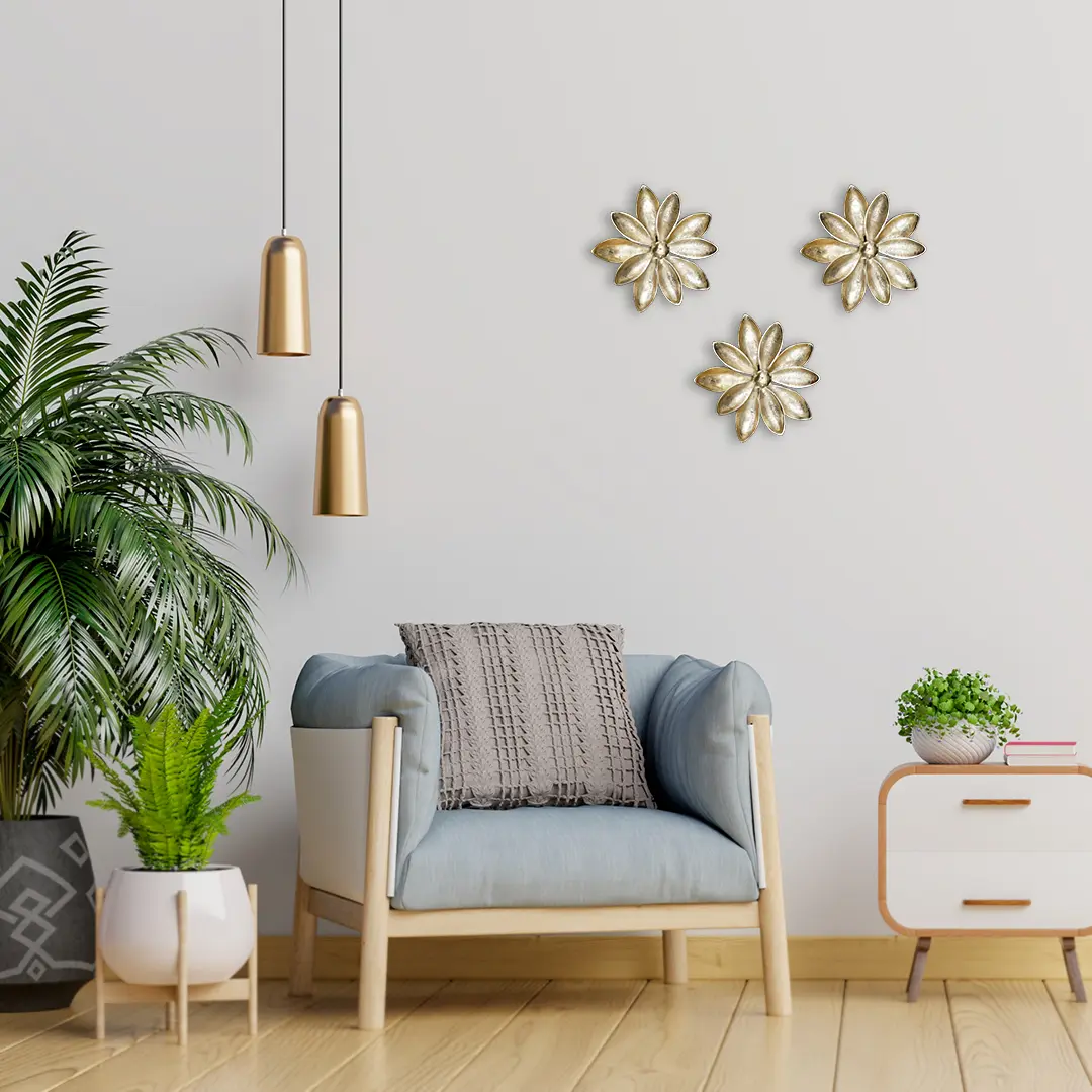 The Designer Brass Flower Wall Decor is crafted from sturdy, stylish metal, exuding a golden radiance that brightens any room. This piece showcases the artist's skill in transforming a simple flower into an elegant wall feature.