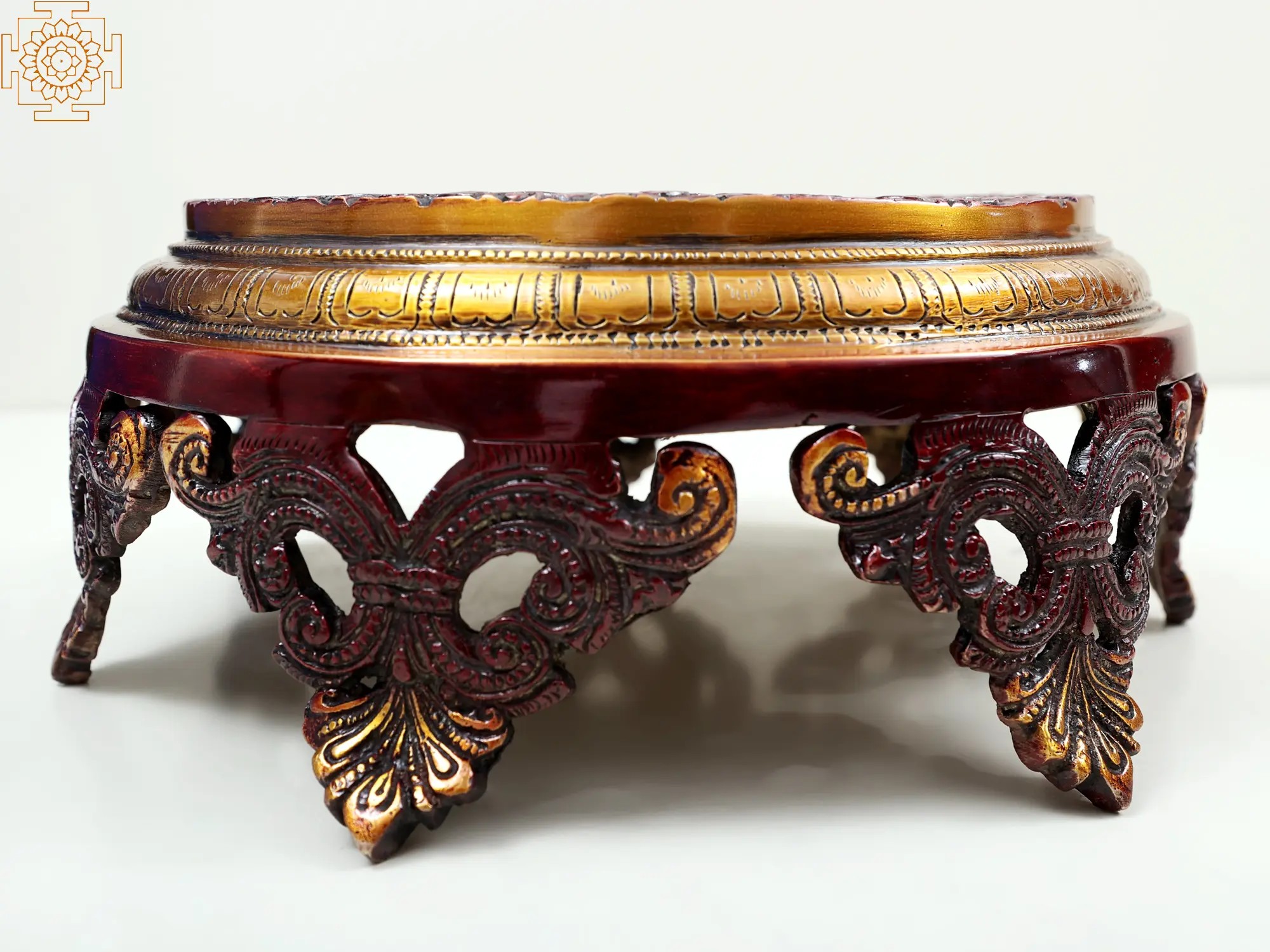 A worship place having a set of unique worship essentials and furniture is a good treat to the eyes; apart from beautiful deity sculptures and puja rituals, their stands or other furnitures, if placed in proper order with amazing carvings, automatically adds to its beauty. Exotic India feels grateful to be of a kind help in decorating your house by providing you with this heavily engraved puja chowki.