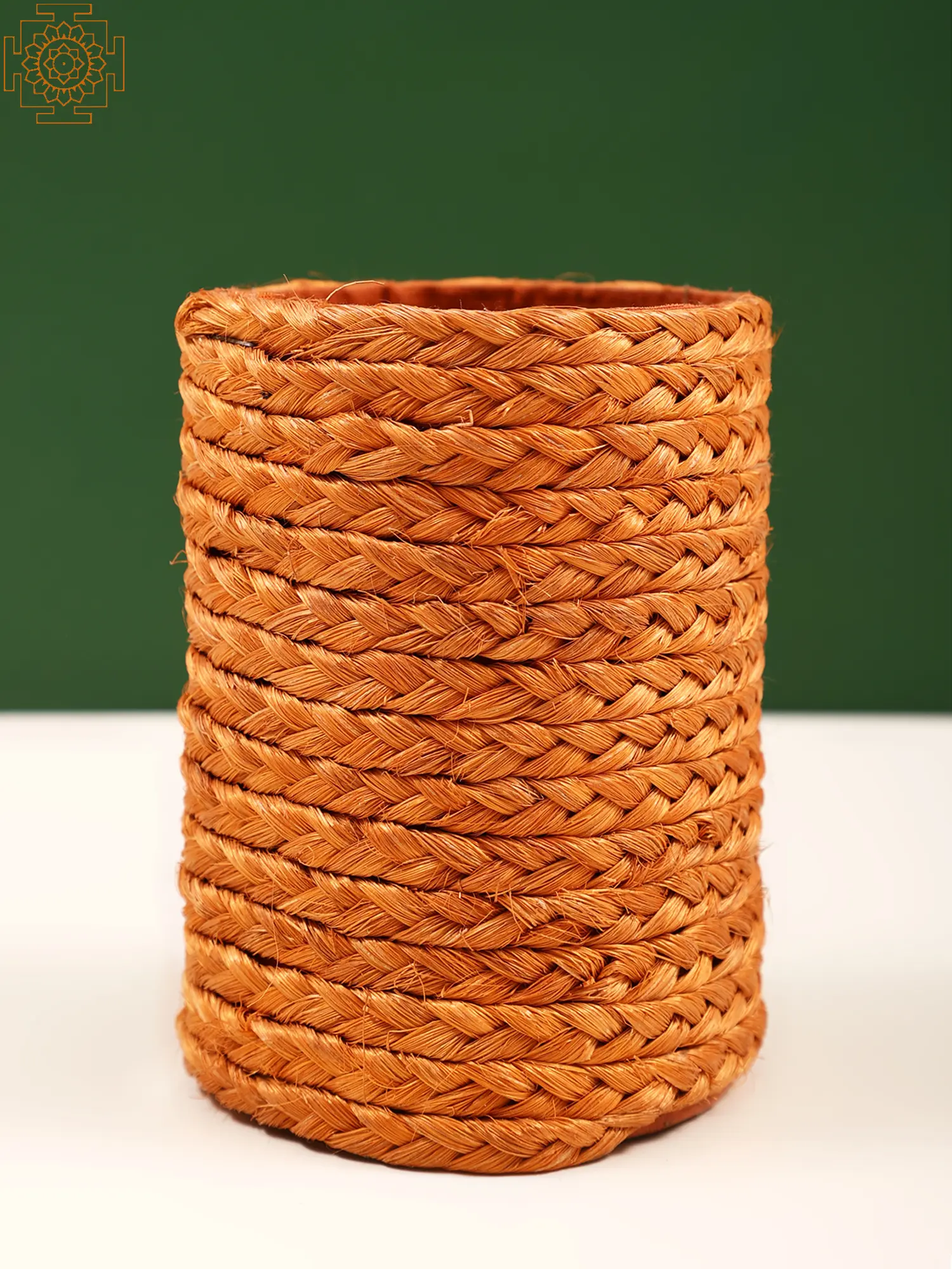 This Fiber Pen stand is made of Coir. Coconut fiber, also known as Coir, is a versatile natural fiber derived from the mesocarp tissue or husk of the coconut fruit. When cleansed after being removed from the coconut husk, the fiber is generally golden in color, thus the moniker "The Golden Fibre." The pen stand due to the hue of the coconut fibre looks like a golden item with all the glaze that reflects on the surface of the fire. It is a unique and sustainable item that is also a testament to the artistic brilliance of the artists of Tamil Nadu. Beyond organizing pens, this stand becomes a tangible link to the region's history, breathing life into an endangered art form.