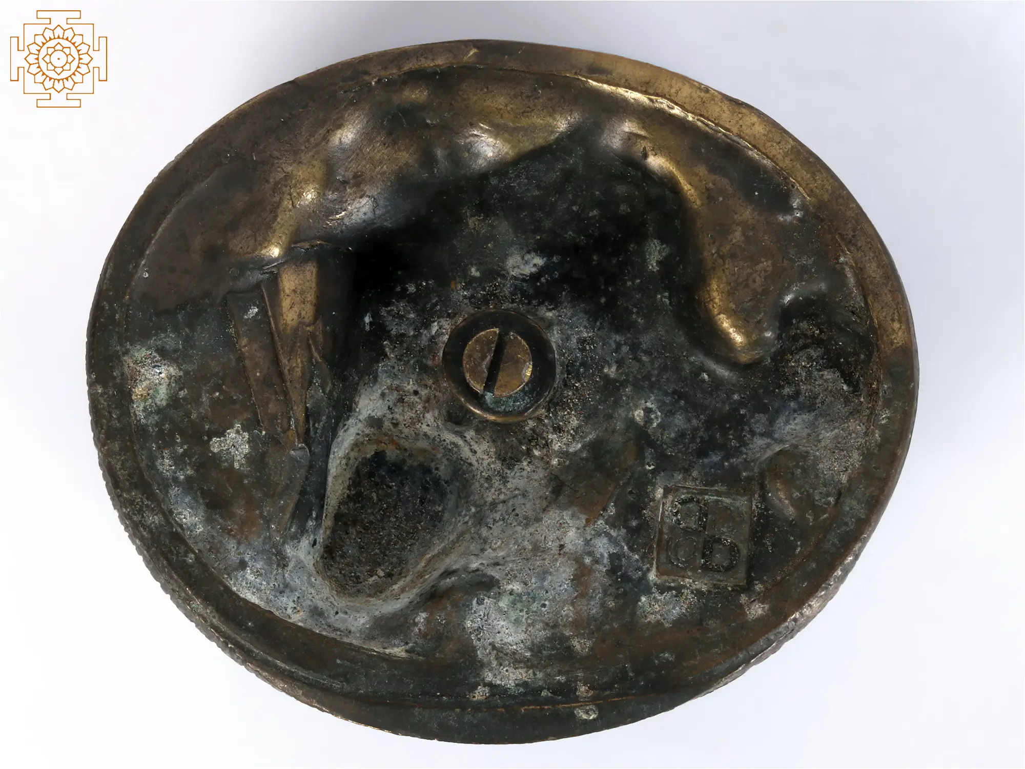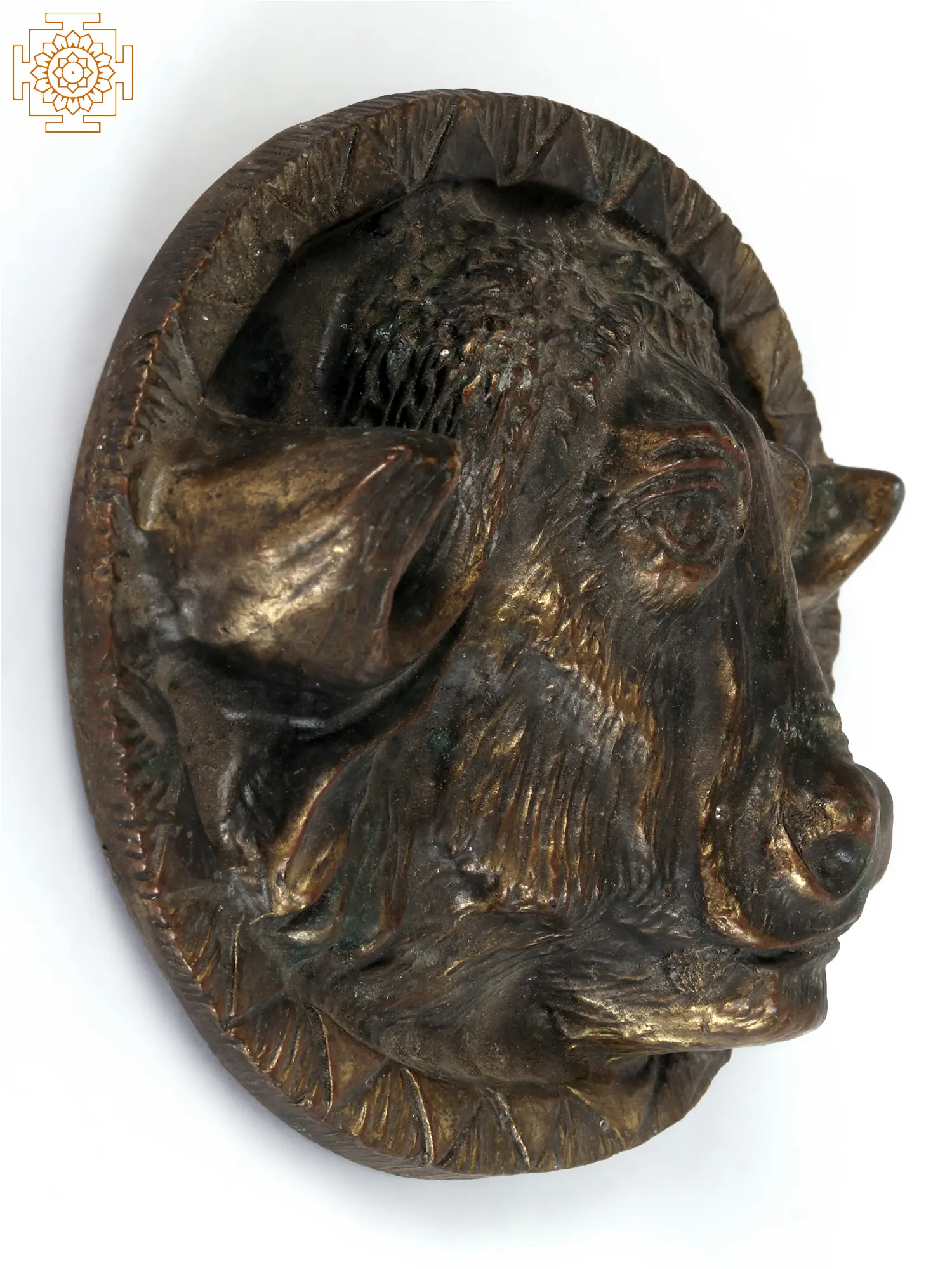 The artificial patina tint on this Small American Bison Tribal Knob in Brass imparts an antique aesthetic, reminiscent of aged metalwork cherished for its timeless appeal. Through a meticulous process, the brass surface is treated with chemicals or dyes to simulate the natural oxidation that occurs over time, resulting in a rich, mottled finish reminiscent of aged bronze or copper.
