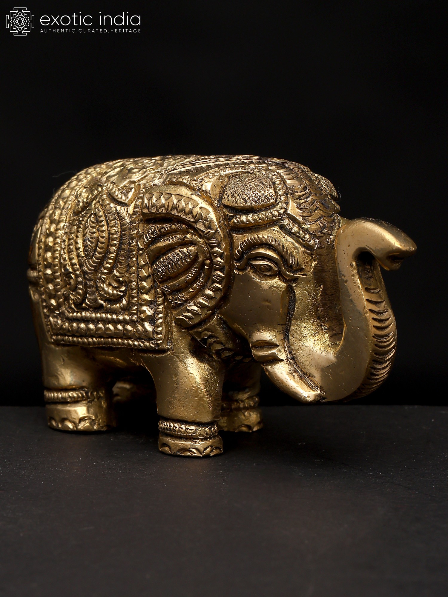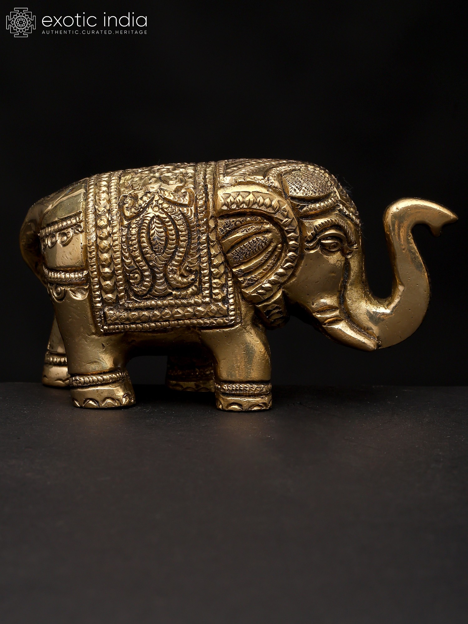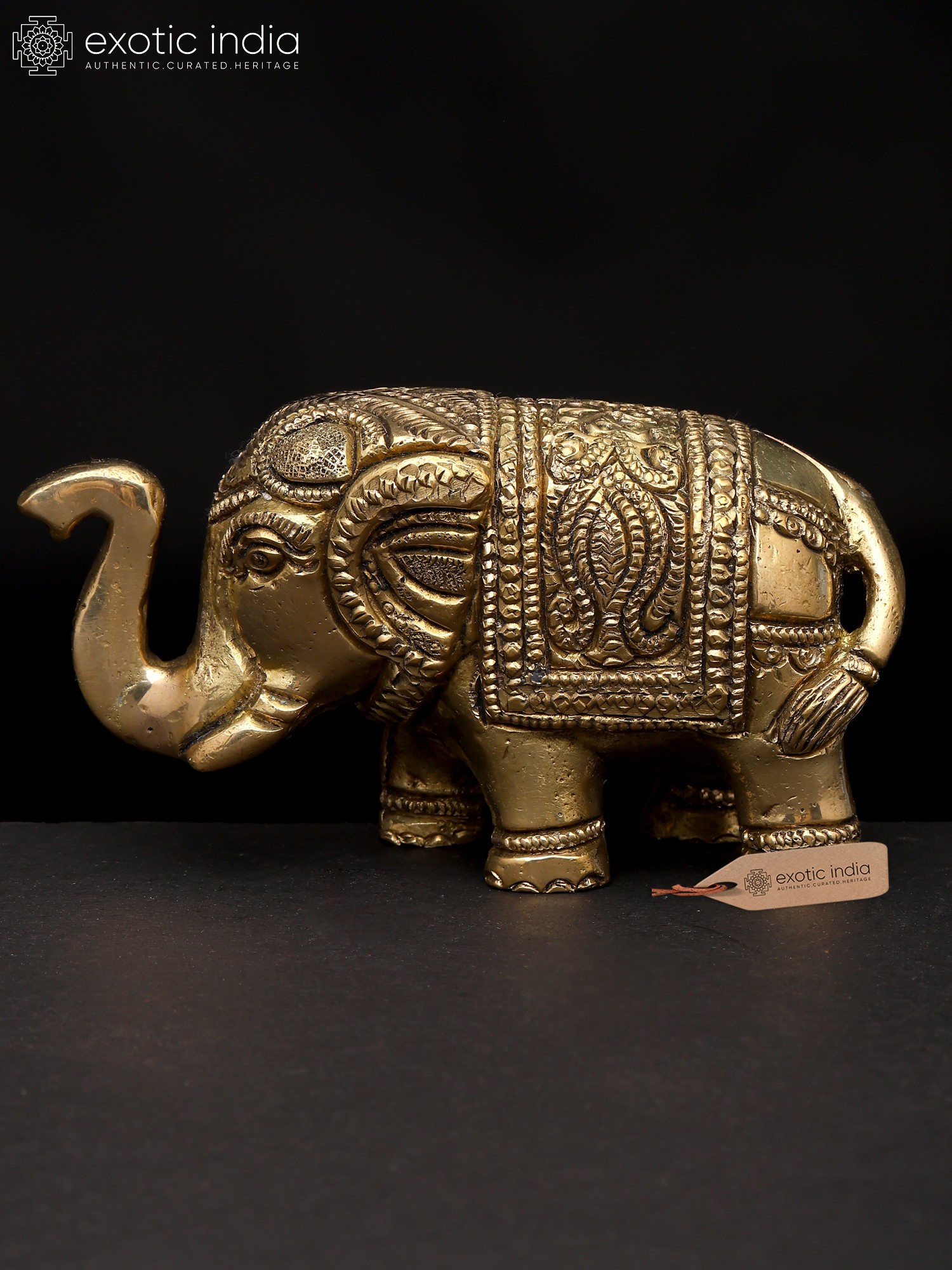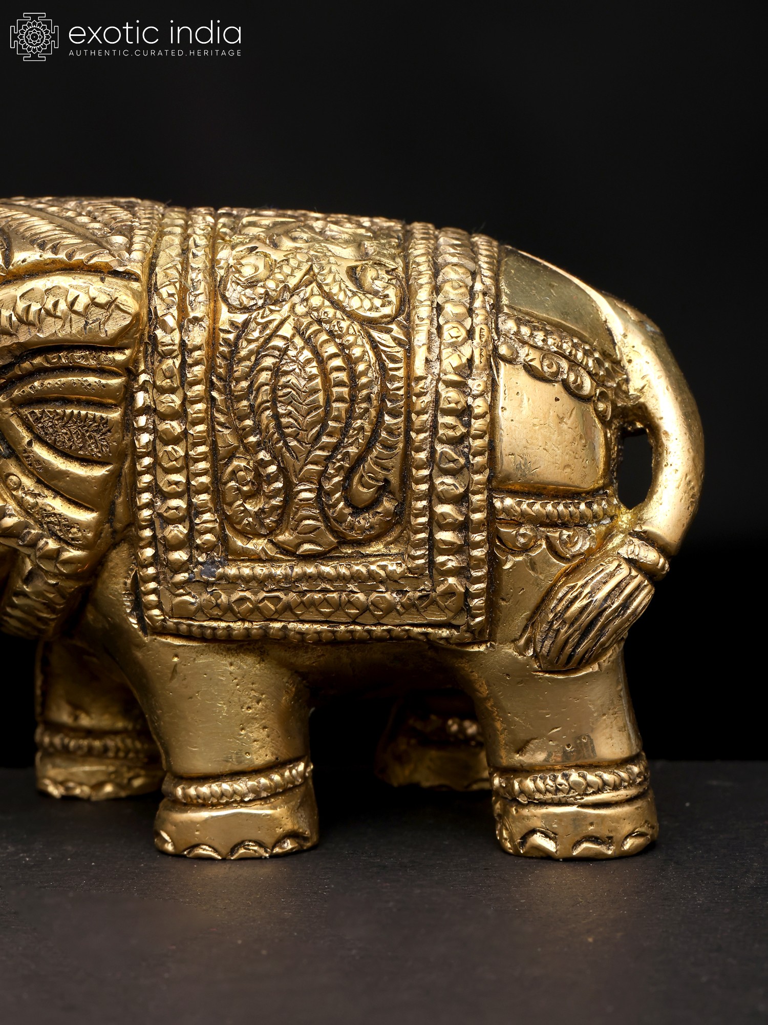 8" Auspicious Gaja Elephant Pair with Lakshmi Ganesha Figures in Brass | Handmade | Made in India