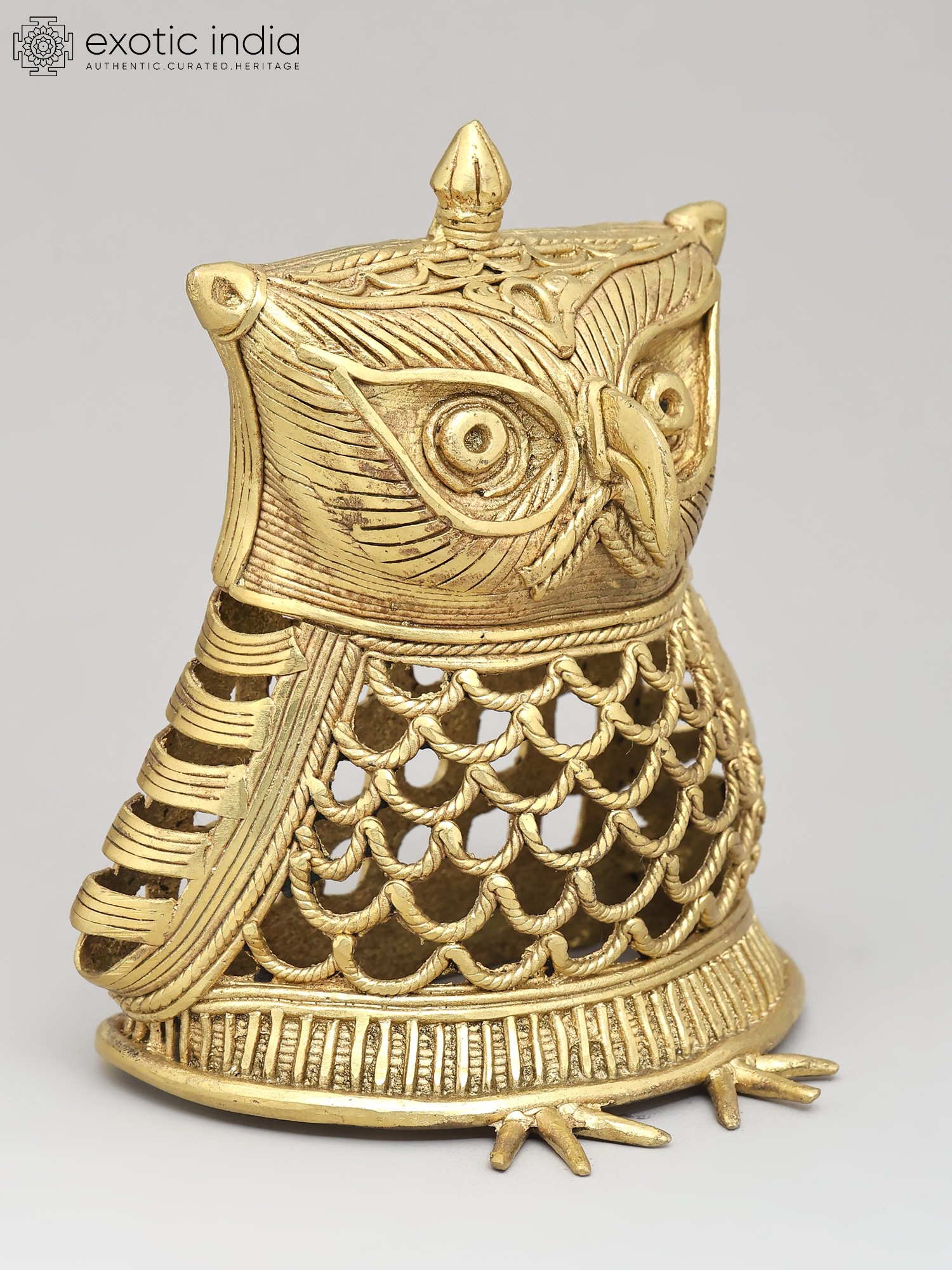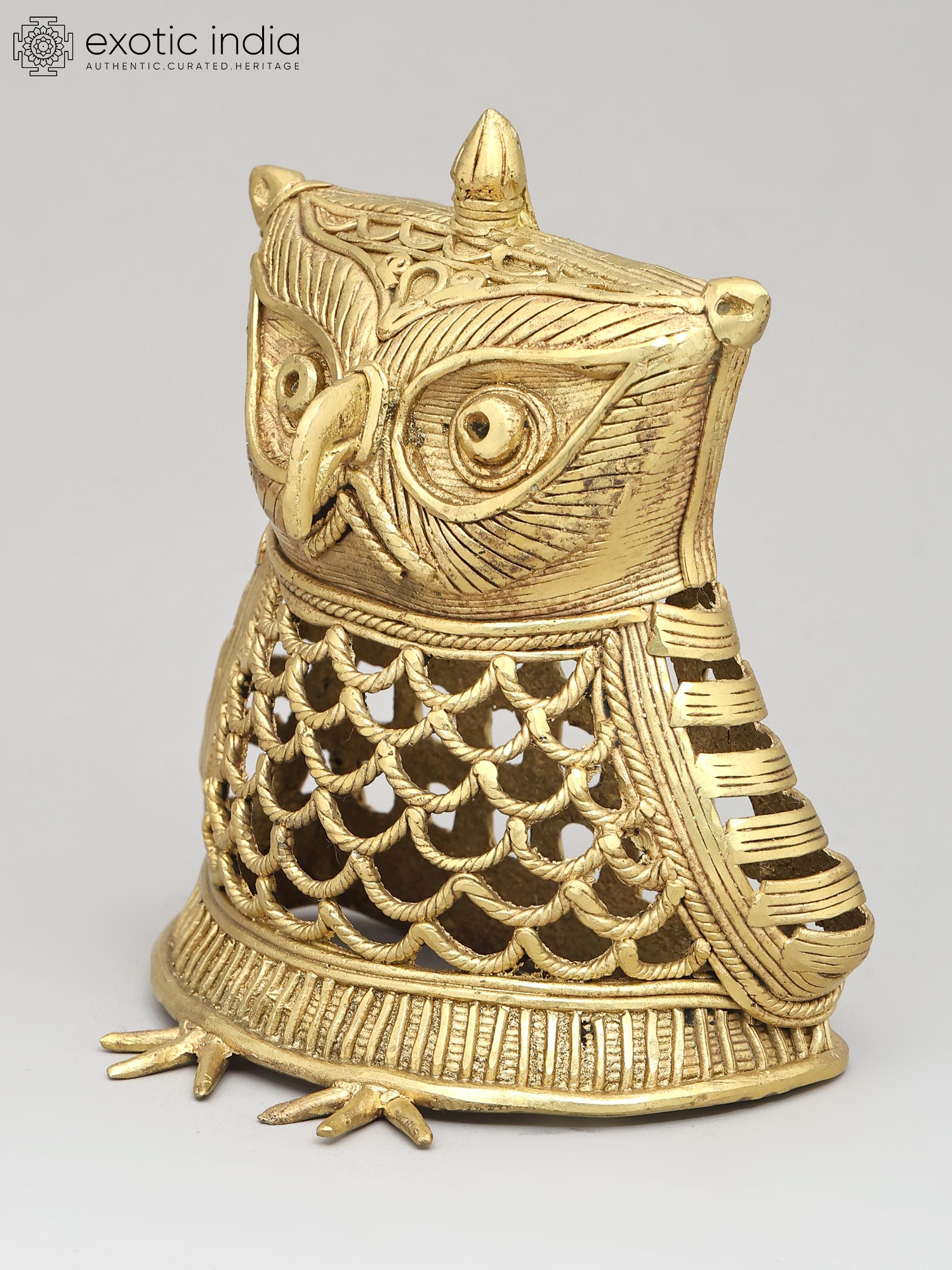 7" Brass Goddess Lakshmi Statue with Owl | Handmade | Made in India