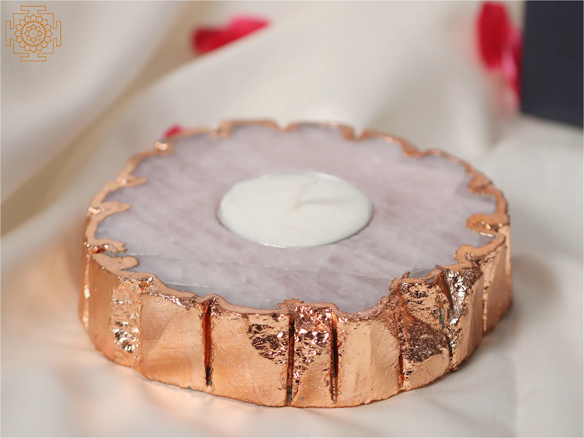 Vaastu is a very significant component of house decor, and generating a serene décor has expanded beyond architecture and into the smaller home decor item areas. Interior designers are increasingly selecting Vaastu-certified things for delivering happiness and combining them with fashionable pieces. The Small Natural White Quartz Crystal Candle Holder with Copper Edge combines beauty with vigor. The combination of quartz crystal and copper radiates elegance while also providing considerable Vaastu advantages. Copper increases good vibrations and conductivity, while quartz crystal increases clarity and spiritual harmony, according to Vaastu principles. They form a synergy that cleanses and balances the environment. The soft lighting shines off the surface of the quartz, creating a peaceful atmosphere.
