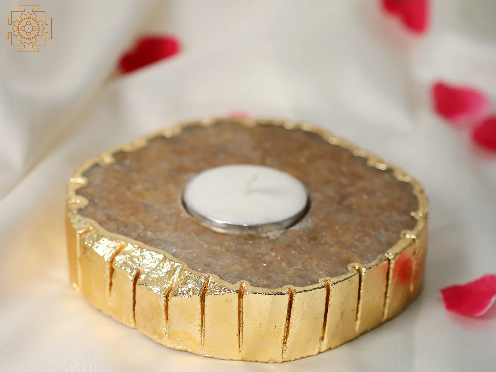 This exquisite Small Natural Yellow Quartz Crystal Candle Holder, adorned with a lavish gold edge, seamlessly blends aesthetic appeal with metaphysical significance. Quartz crystals are renowned for their amplifying properties, enhancing energy, and promoting clarity. Coupled with the warm glow of candlelight, this union creates a serene ambiance that encourages introspection and tranquility. The quartz crystal's ability to channel and purify energy harmonizes with the symbolic illumination of the candle, fostering a soothing atmosphere for meditation or relaxation. This artful fusion not only elevates the visual allure of the space but also infuses it with a subtle, positive energy, making it a captivating and meaningful decor piece.