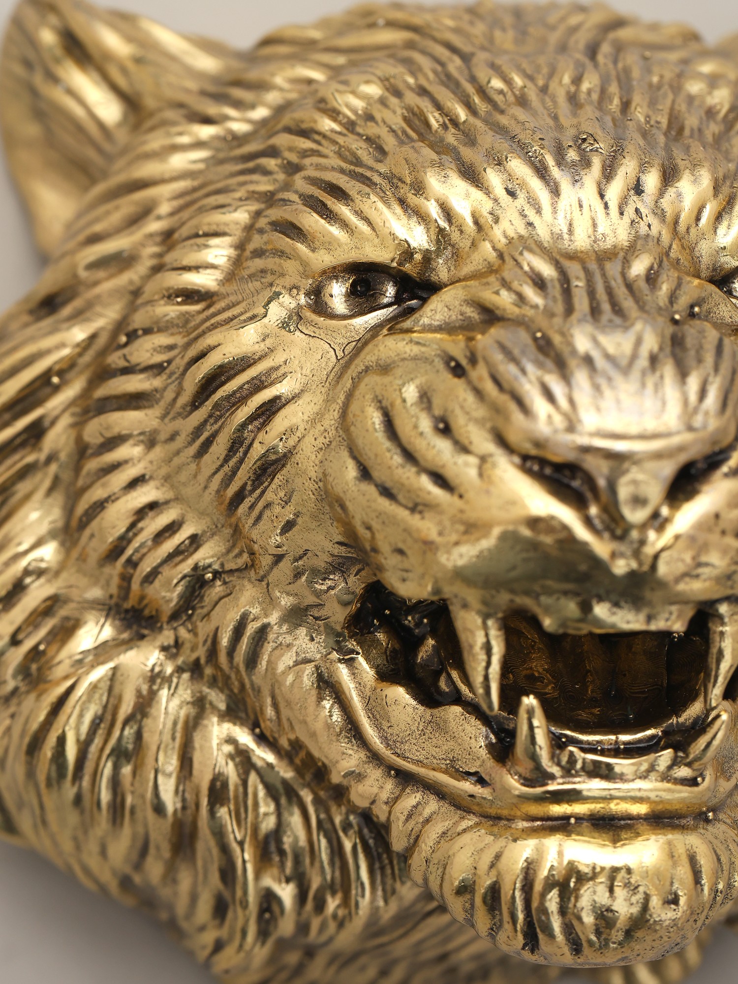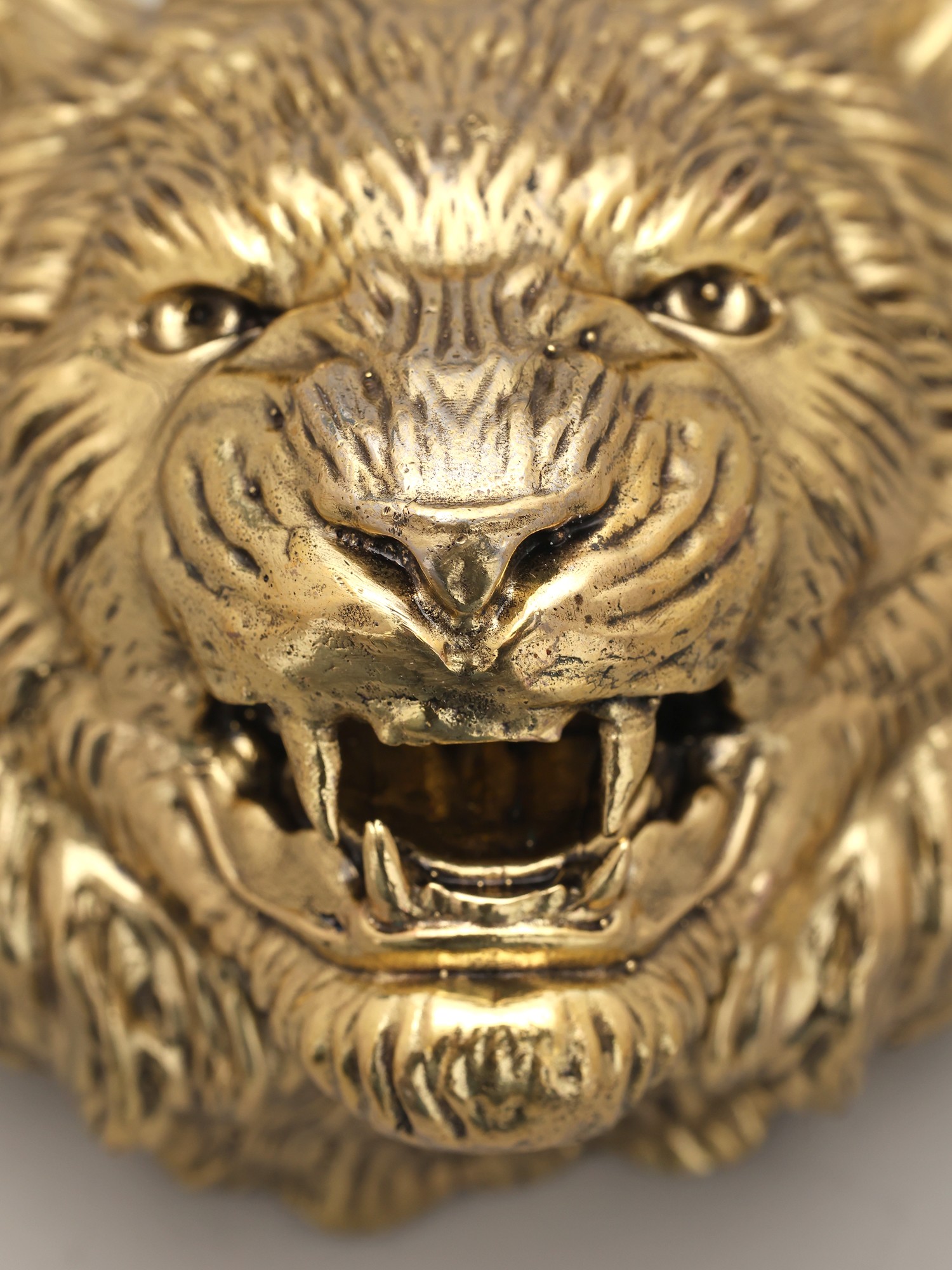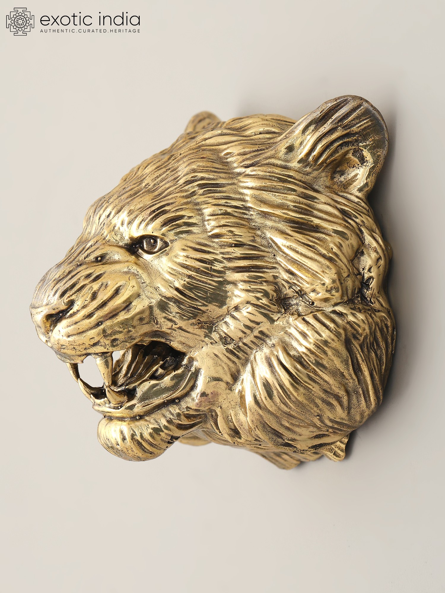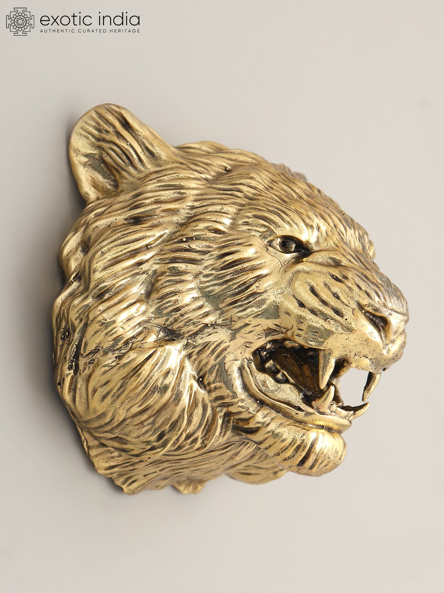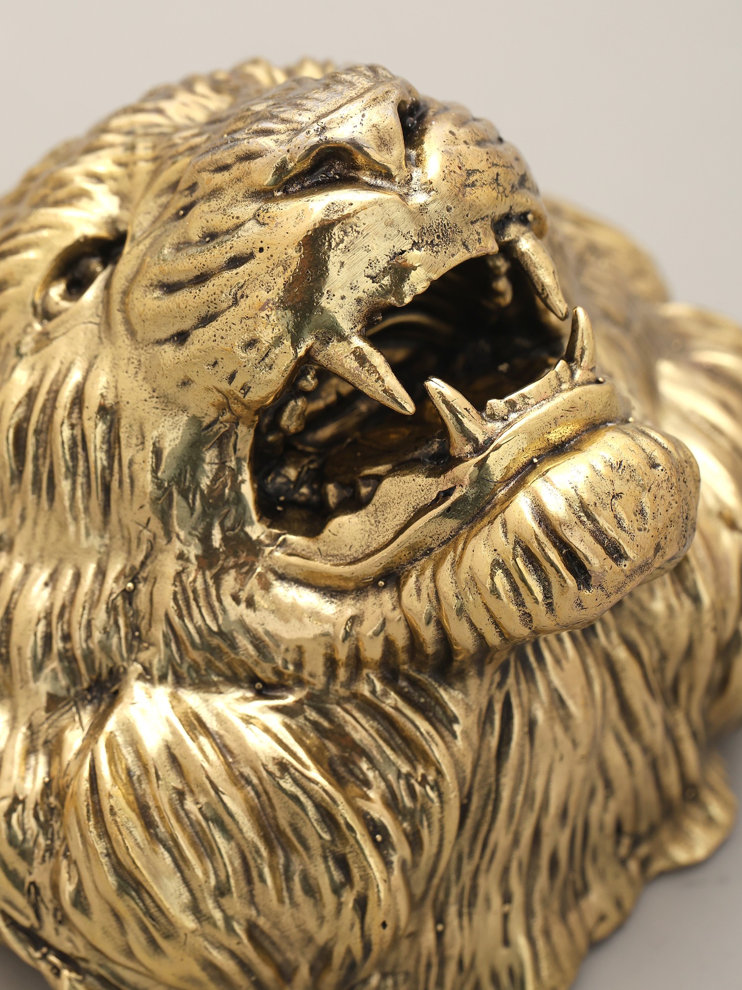 This captivating piece is made of high-quality brass, known for its durability and timeless appeal. The lustrous metal accentuates the intricate details of the lion's mane and features, creating a visually stunning effect. Notice the texture of the fur, the sharp definition of the teeth, and the thoughtful rendering of the eyes – each element is meticulously crafted to bring the lion to life. The brass material also allows for the creation of delicate details while maintaining a substantial feel. The piece is surprisingly lightweight, making it easy to hang securely on your wall. Its warm, golden hue adds a touch of warmth and luxury to any room, complementing a wide range of interior design styles.