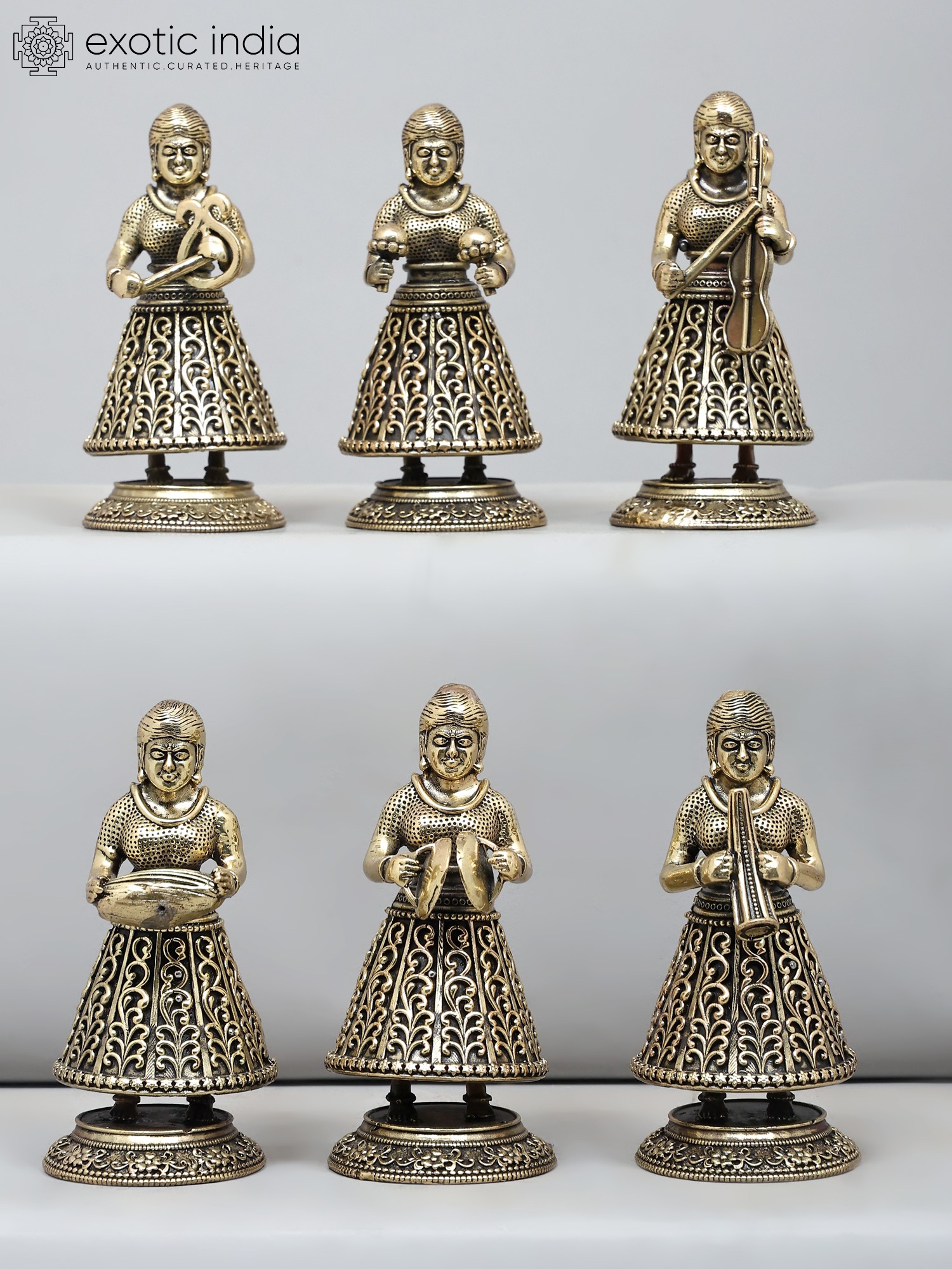 9" Set of Four Musician Ladies In Brass | Handmade | Made In India