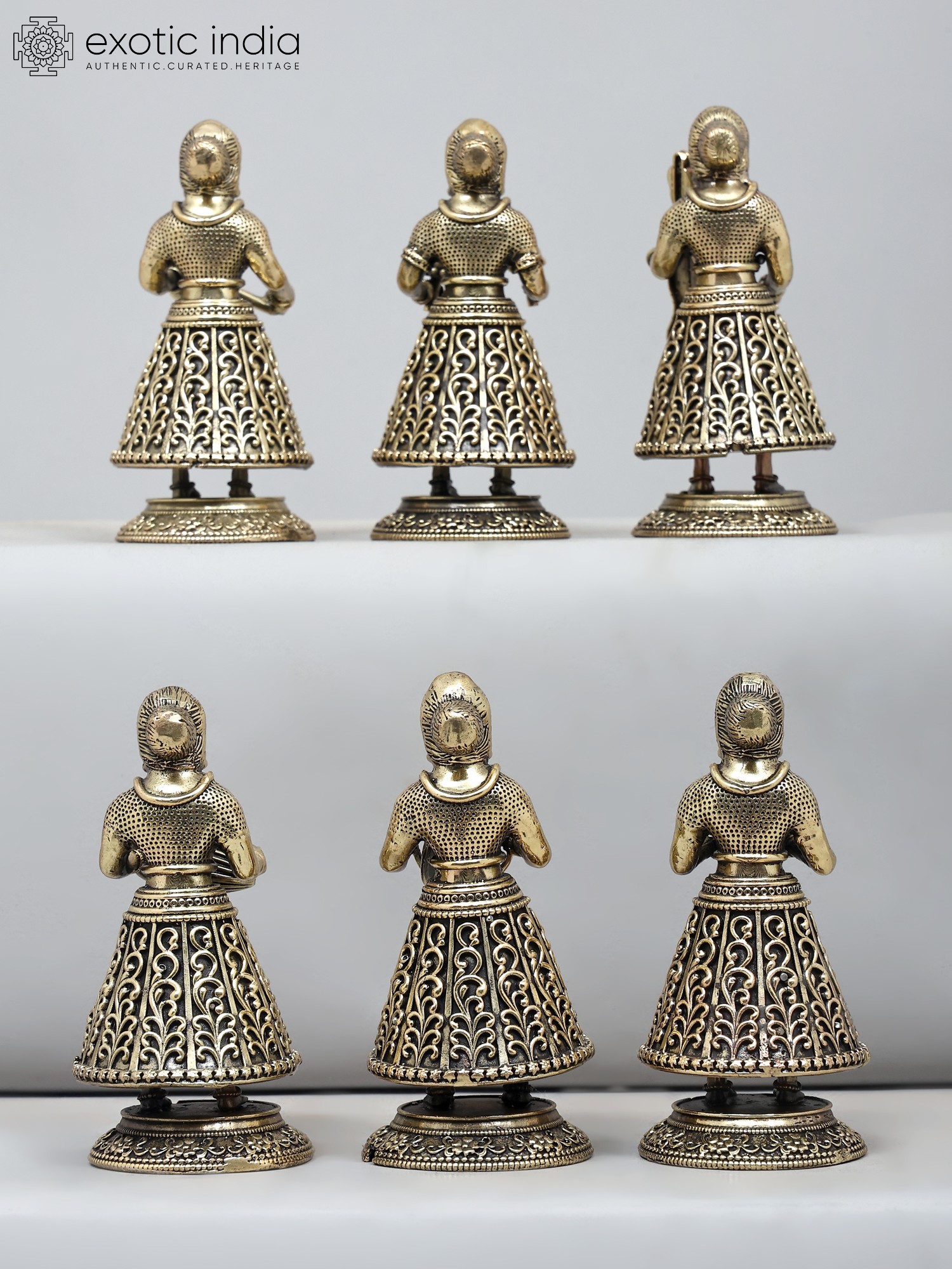 4" Set of Six Tribal Musicians (Folk Statues from Bastar) In Brass | Handmade | Made In India