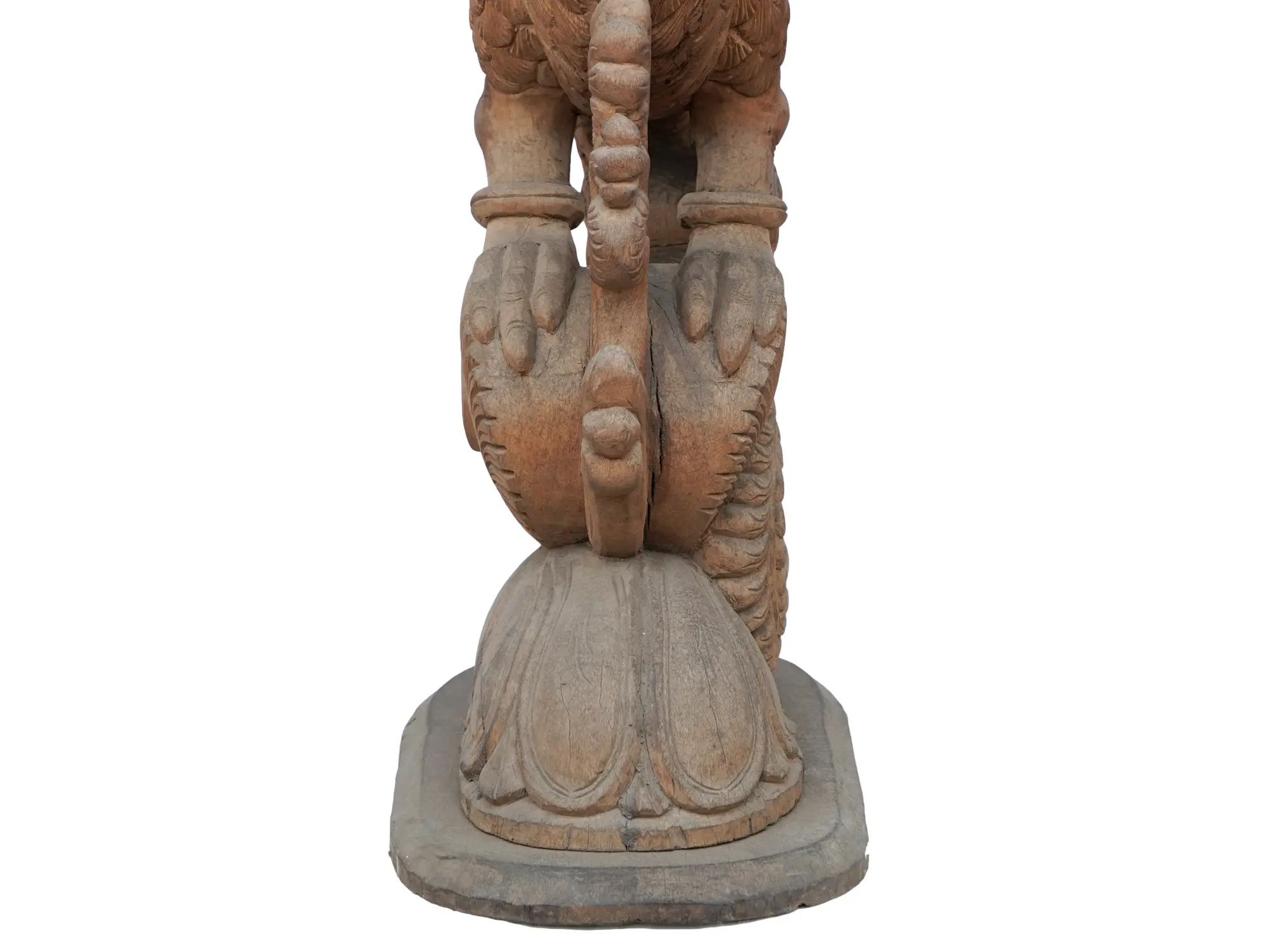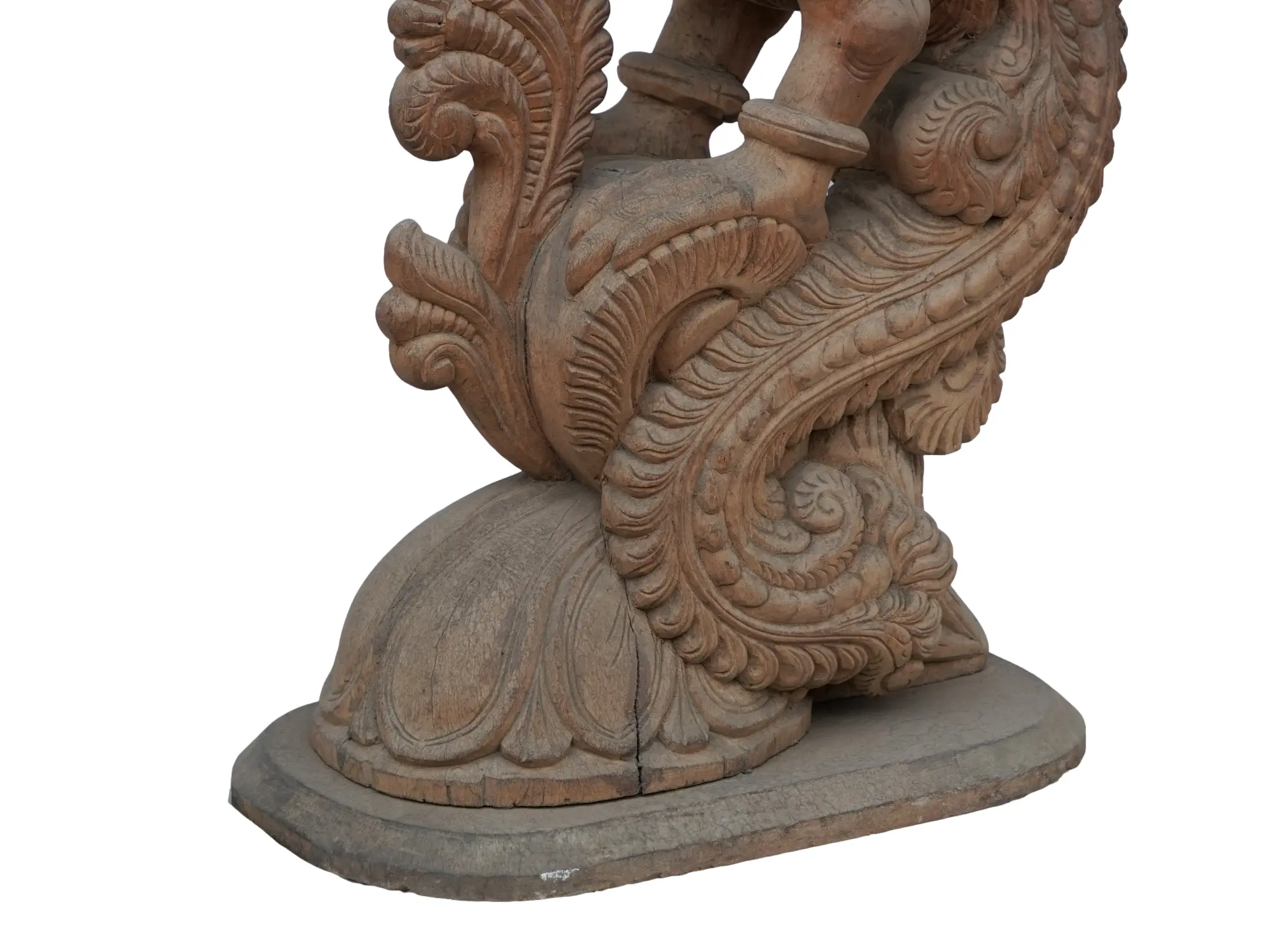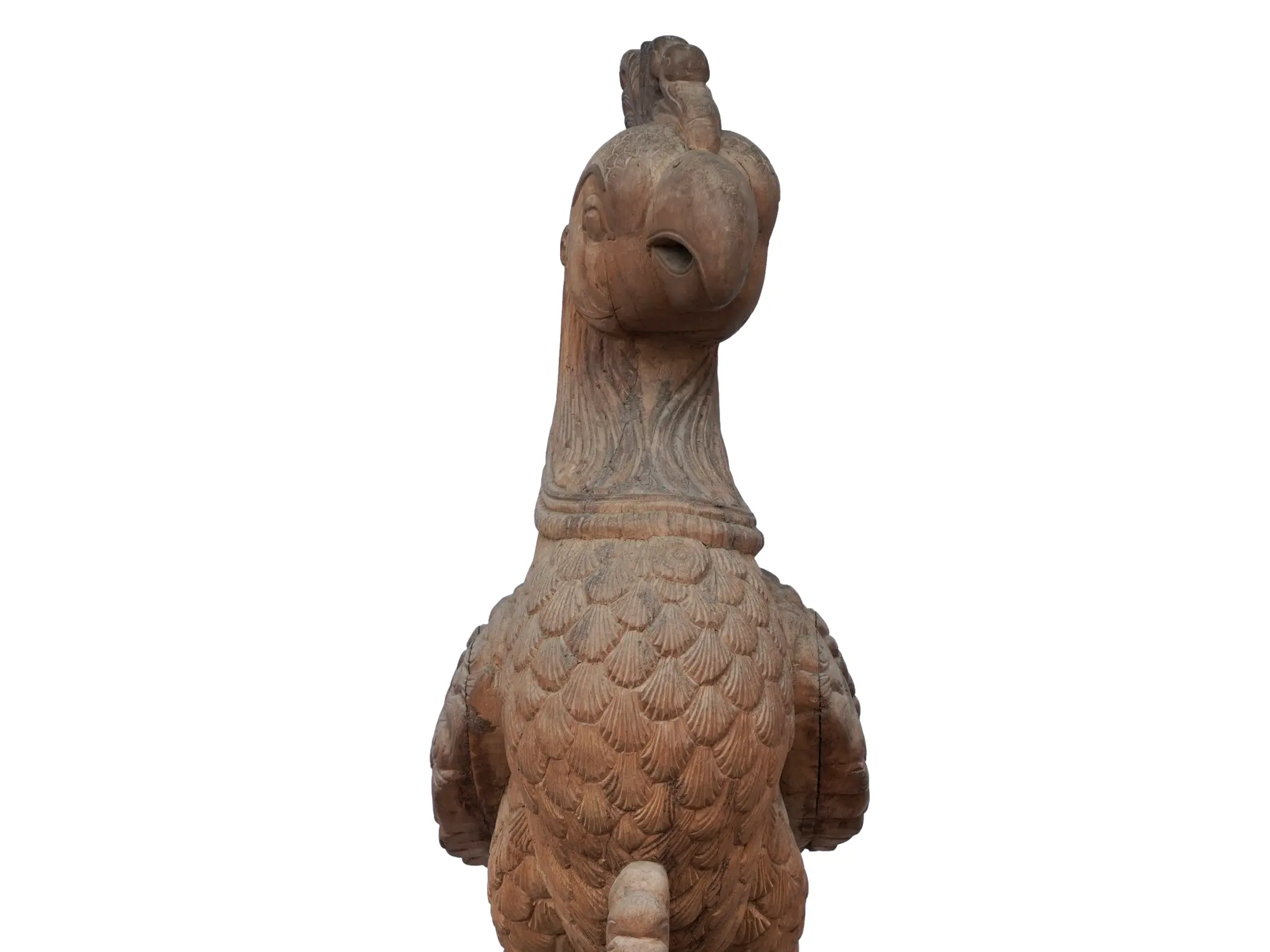 Every feather, curve, and swirl has been meticulously carved, showcasing the exceptional skill of the artisan. The parrot's vibrant pose is captured with stunning realism, from the subtle tilt of its head to the delicate detailing of its plumage. The base, equally ornate, is a swirling masterpiece of wood carving, adding another layer of visual richness to the piece. The level of detail is breathtaking, creating a truly captivating and awe-inspiring display. Feel the weight of history and tradition in your hands as you admire the beauty of this exceptional creation. This is not merely a carving; it is a testament to artistic dedication.