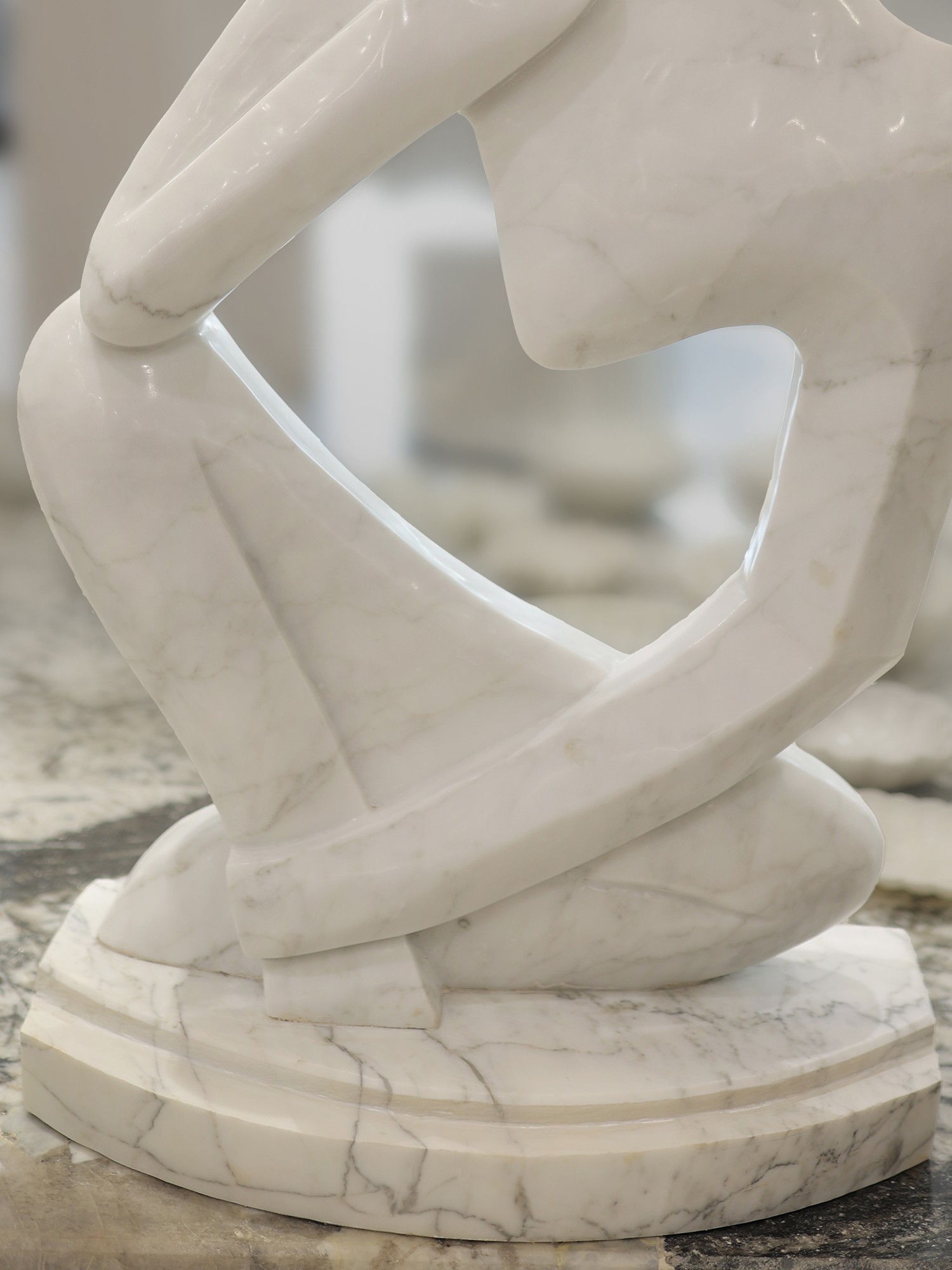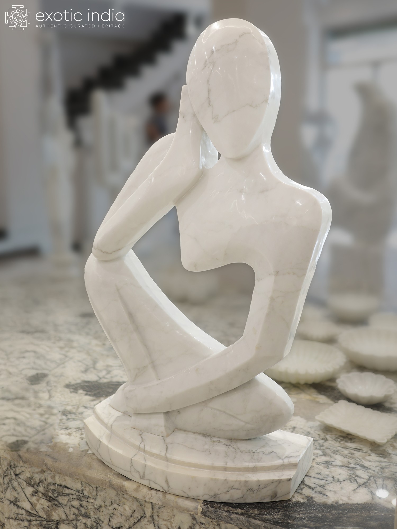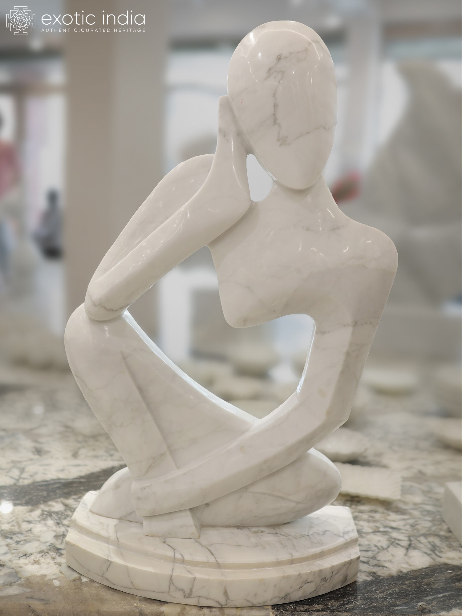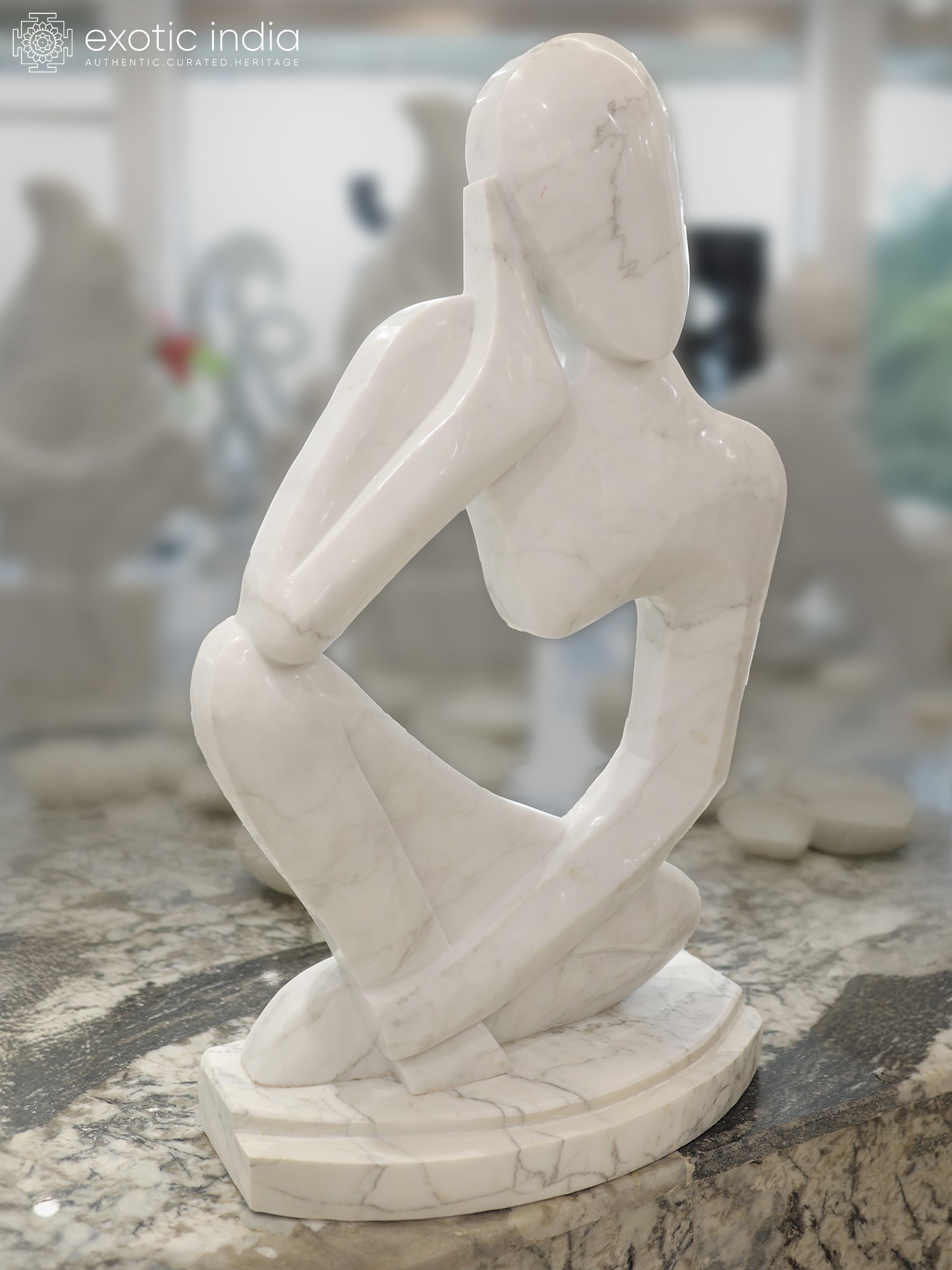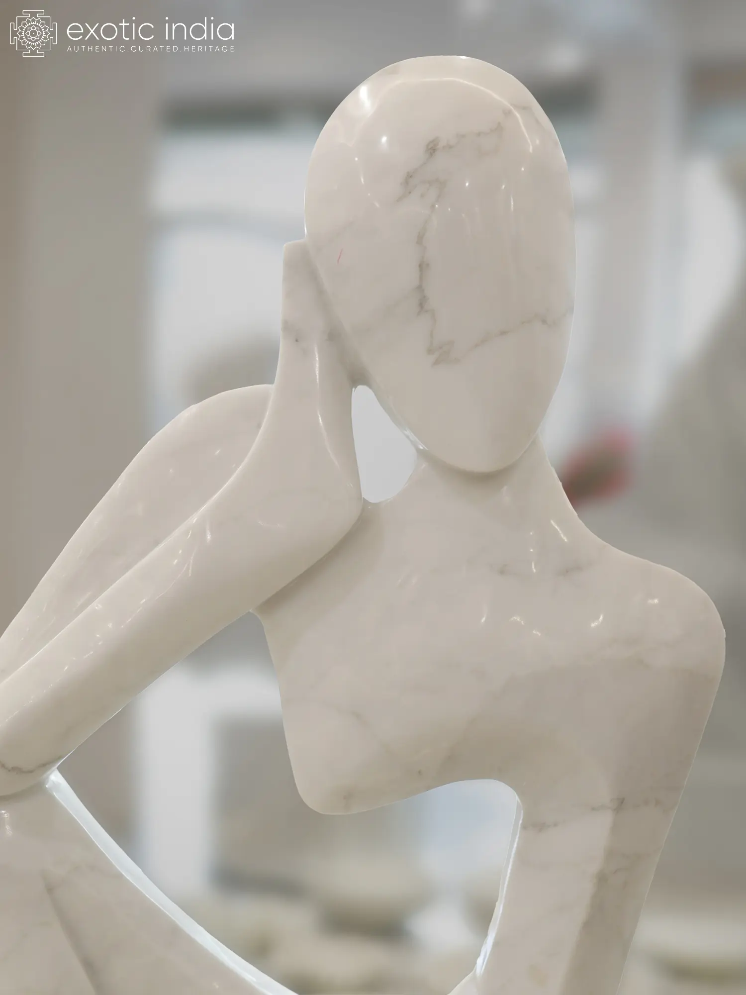 46" Embracing the Wave | Modern Art Statue | White Marble | Excellent Indian Art