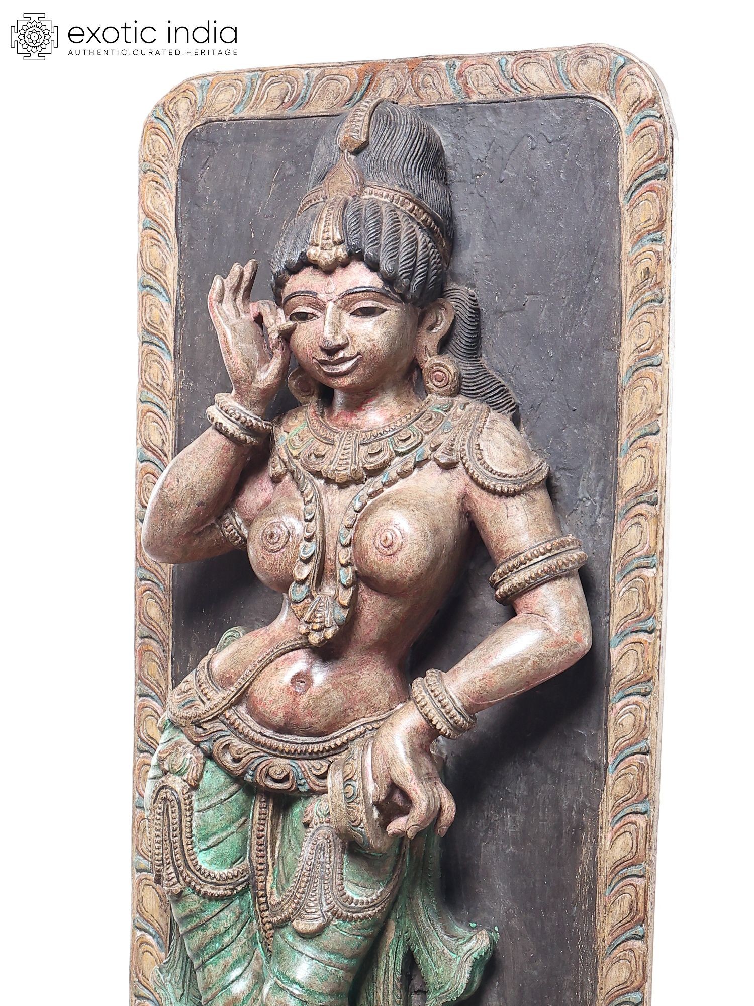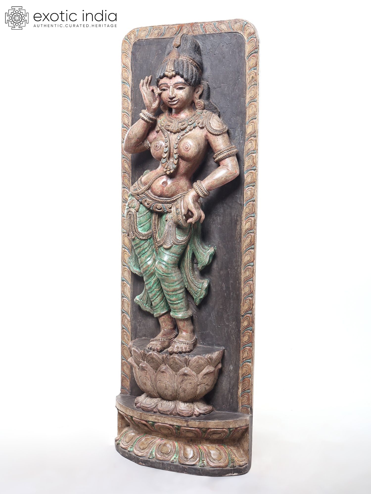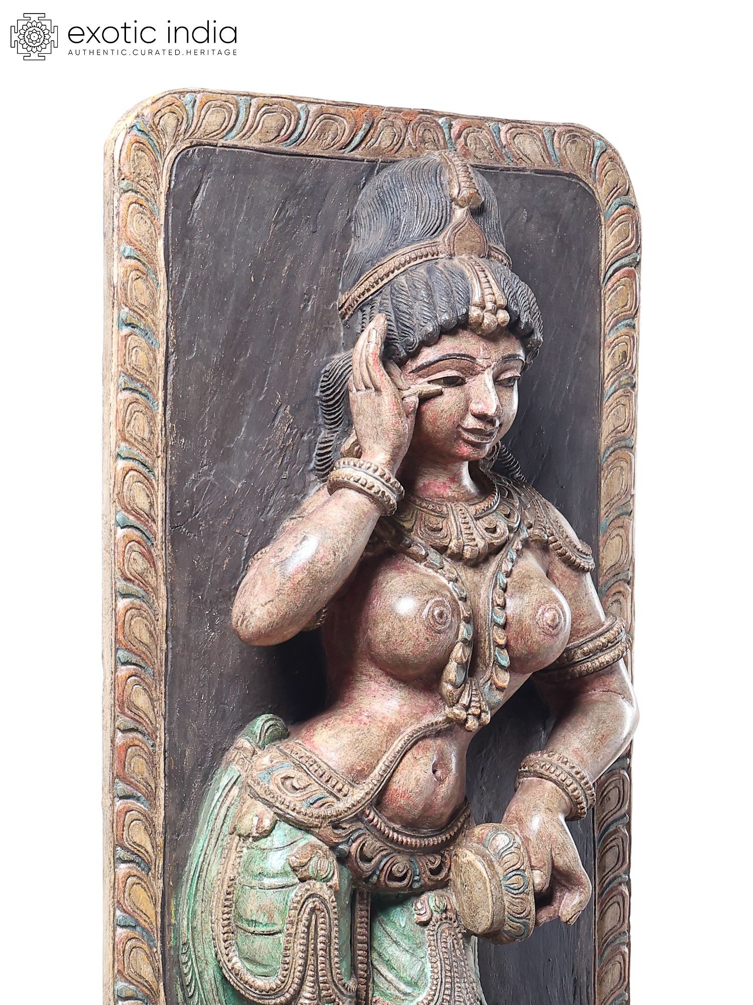 42" Devangana (Temple Maiden) in Shringara Pose Wooden Statue by Jagriti Bhardwaj