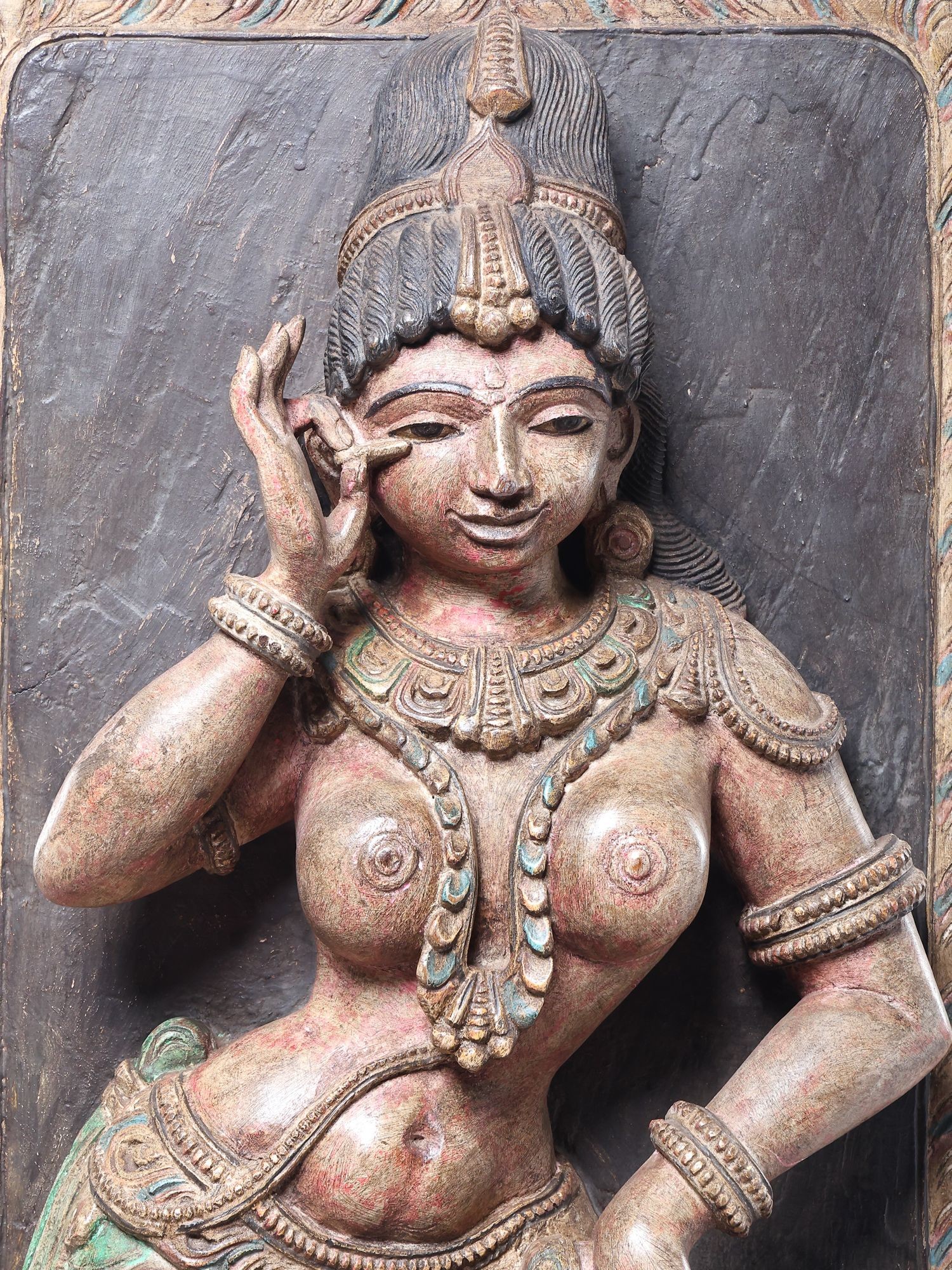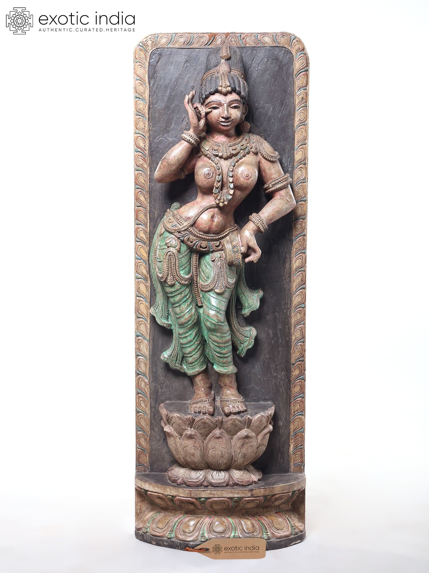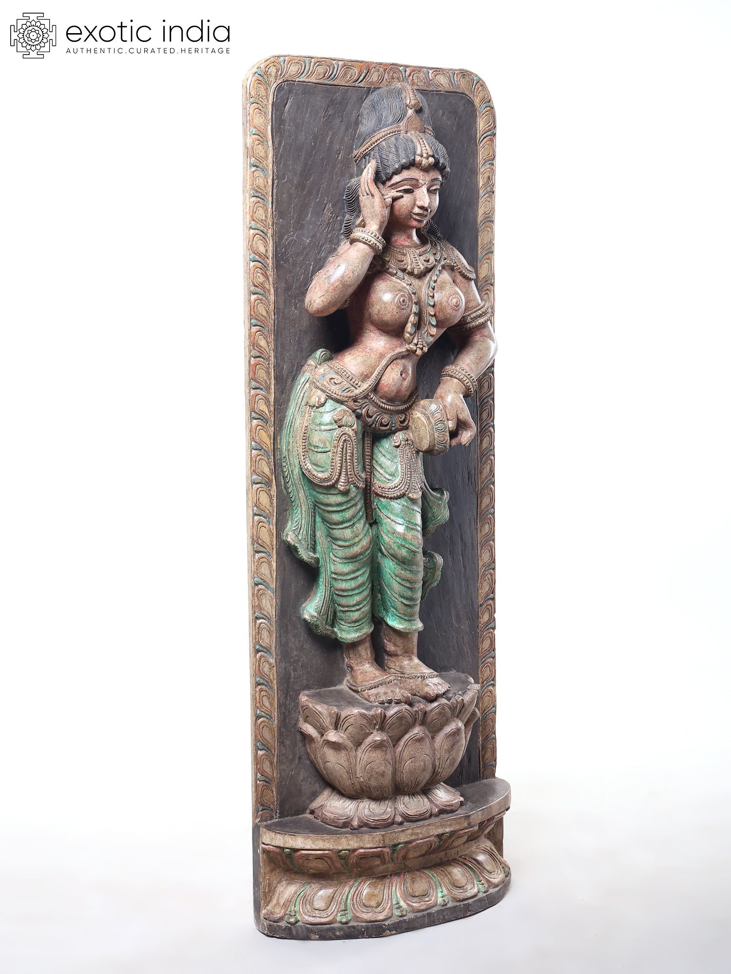 42" Devangana (Temple Maiden) in Shringara Pose Wooden Statue by Jagriti Bhardwaj