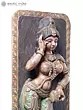 Crafted from wood with meticulous attention to detail, showcasing intricate facial features and ornamentation.