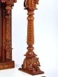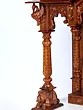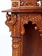 Crafted from rich, durable wood with intricate, hand-carved detailing on pillars and panels.