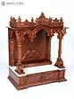 20" Temple-Altar with Prabhavali and a Drawer In Brass & Wood | Handmade