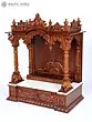 Grand Wooden Temple (53") Featuring Lord Ganesha Inlay