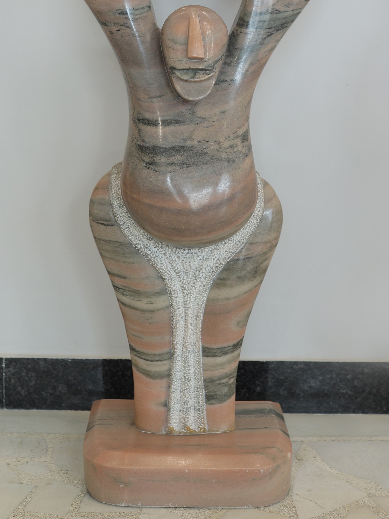 54" Large Sized Seated Goddess Sridevi Statue In Stone | Hand Carved | Granite Stone Statue