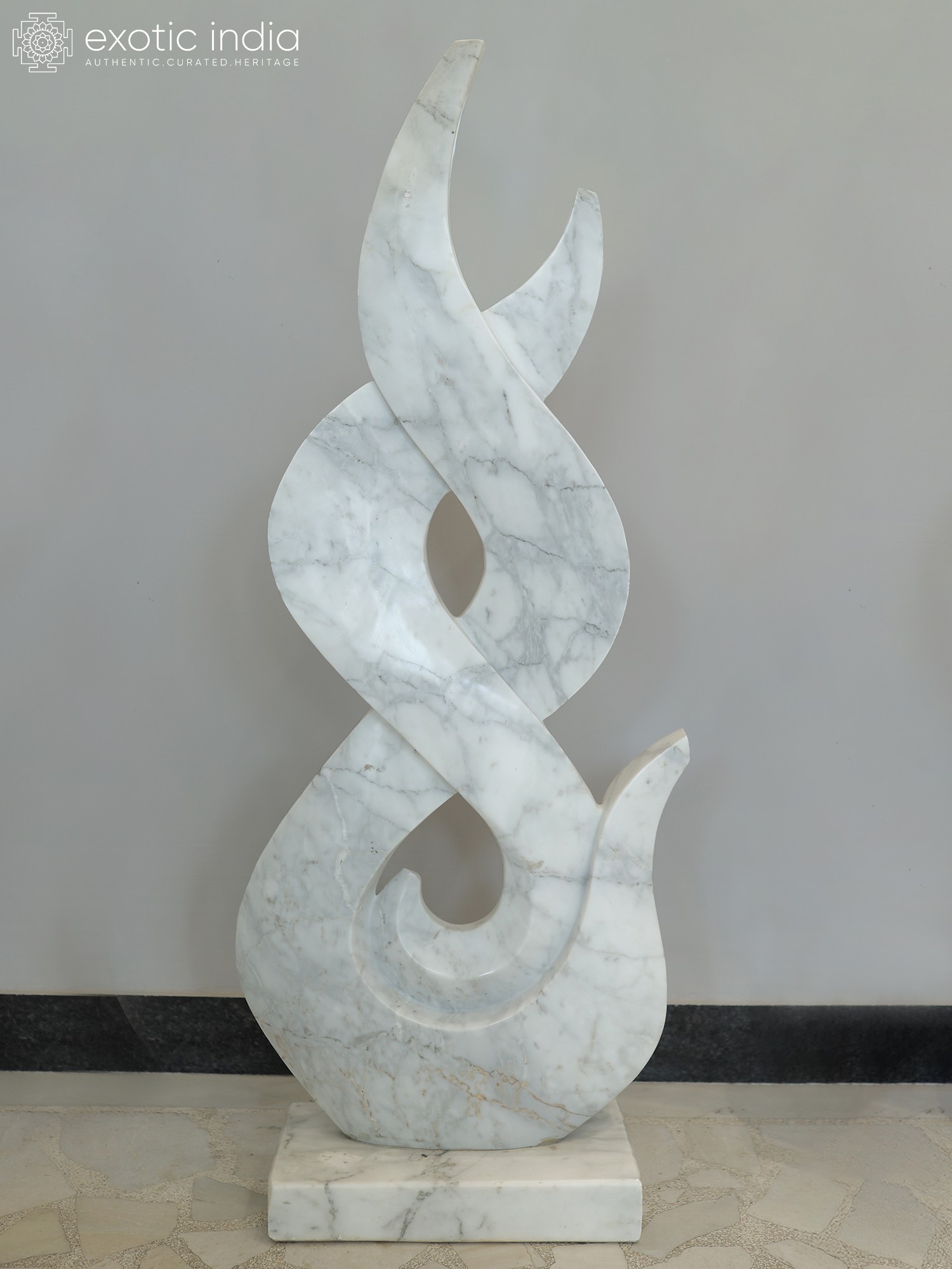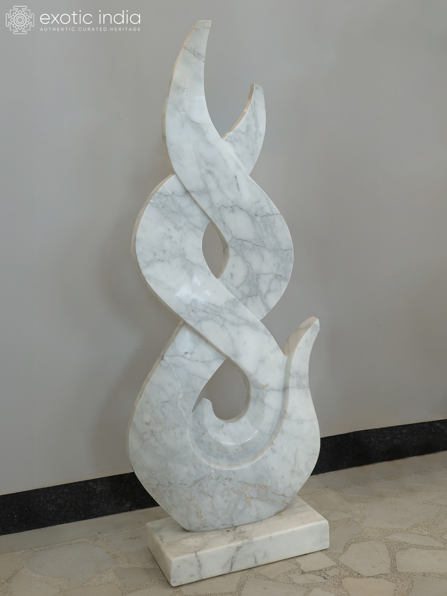66" Eternal Flame | Abstract Modern Art Statue | White Marble | Exquisite Indian Art