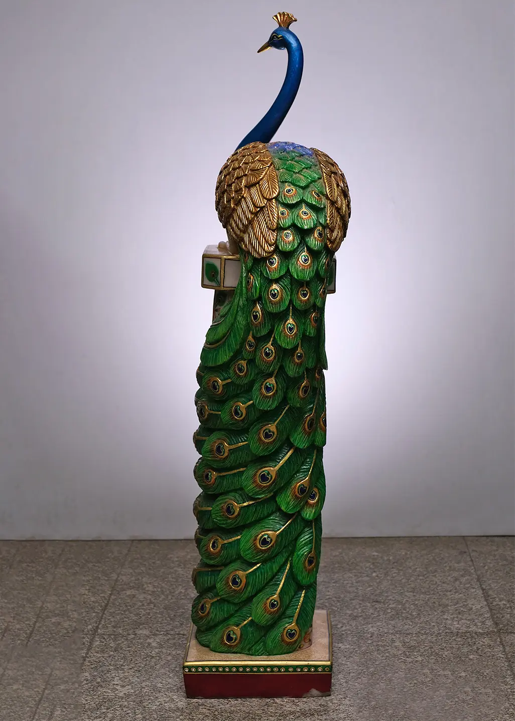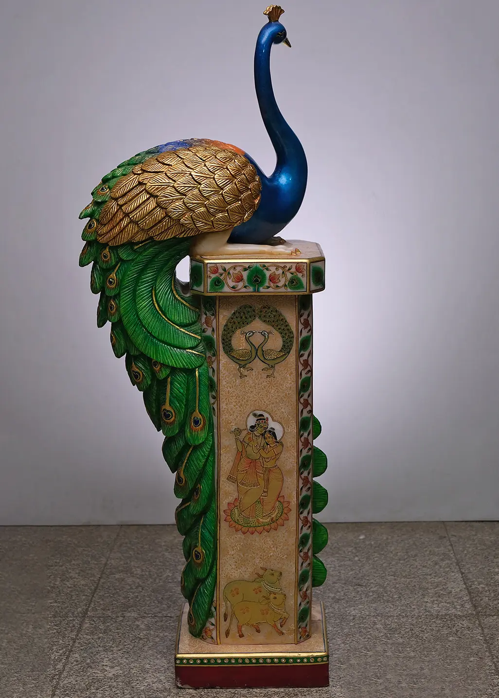 A stunning peacock pattern, skillfully carved and painted by master craftsmen, can be seen on each pillar. The peacock design gives your decor a sense of grandeur while representing beauty, elegance, and success. A visually stunning masterpiece is produced by the flawless blending of the rich, brilliant hues with the natural marble stones. They offer outstanding stability and longevity due to their strong design.