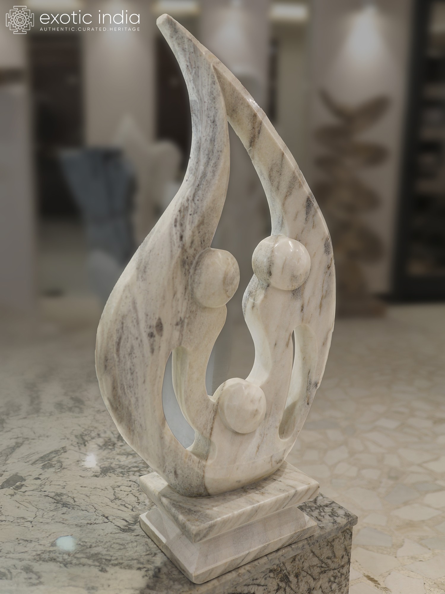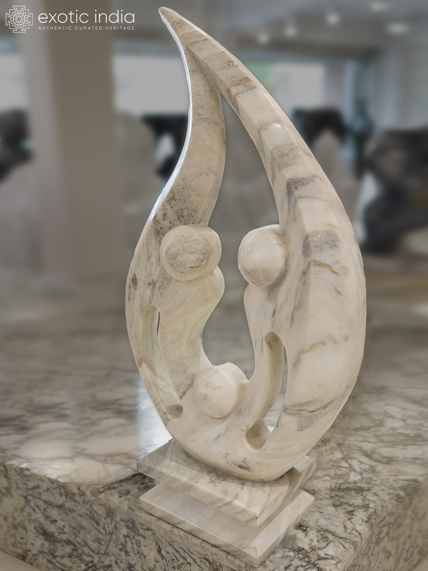 49" Timeless Embrace Sculpture | Modern Art Statue | White Marble | Exquisite Indian Art